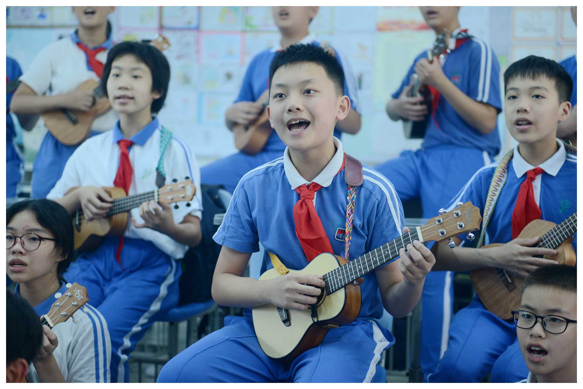 音乐学科组以国家课程教学为基础,开展了更为丰富的特色音乐课程、校本课程。乐器校本课程为我校的一大亮点,让每一个学生每年都学会一样乐器:一年级—小型打击乐、二年级—钢片琴、三年级—竖笛、四年级—口风琴、五年级—口风琴、六年级—尤克里里。努力提升学生的音乐综合素养,发展自己的小特长。