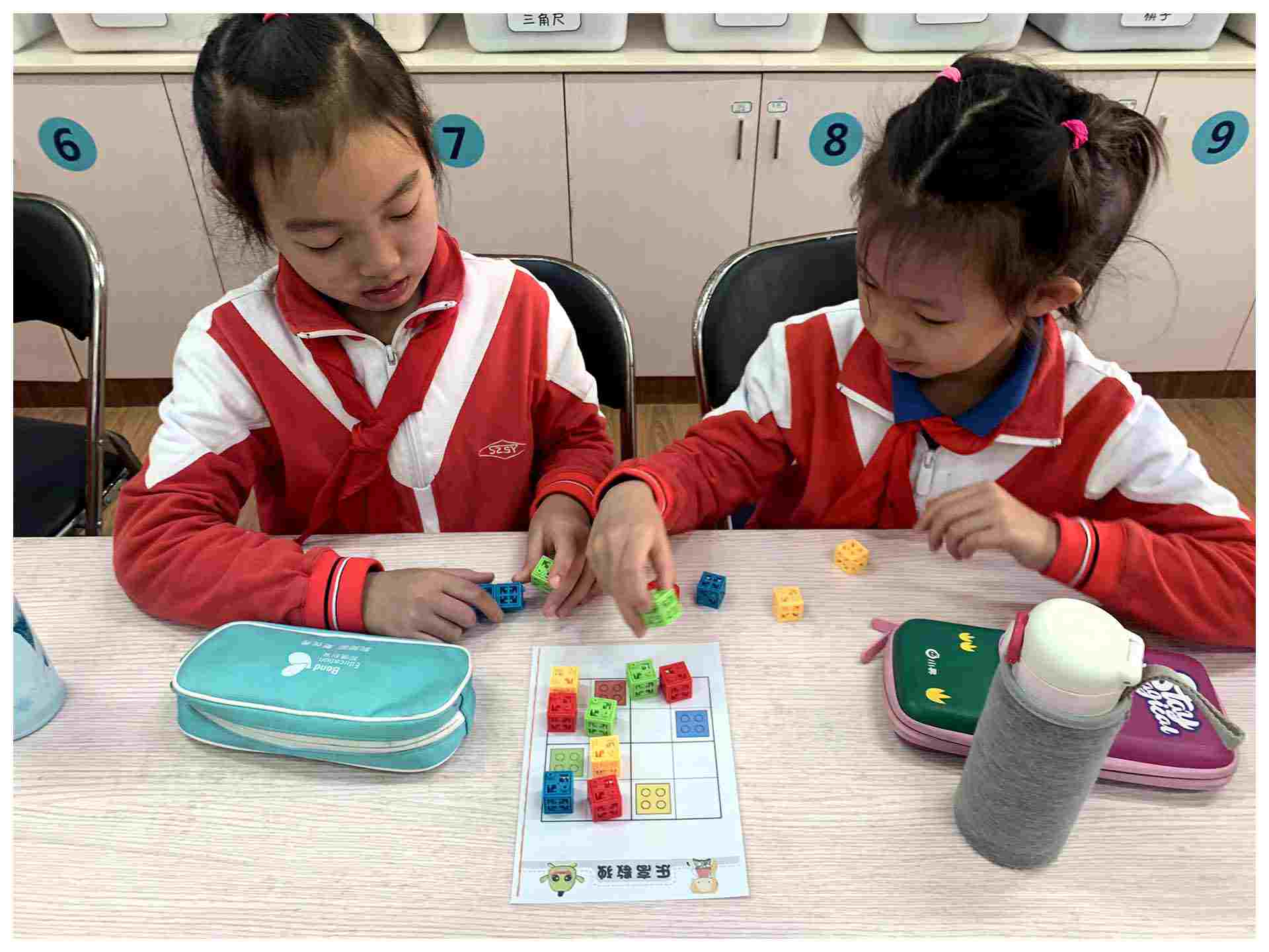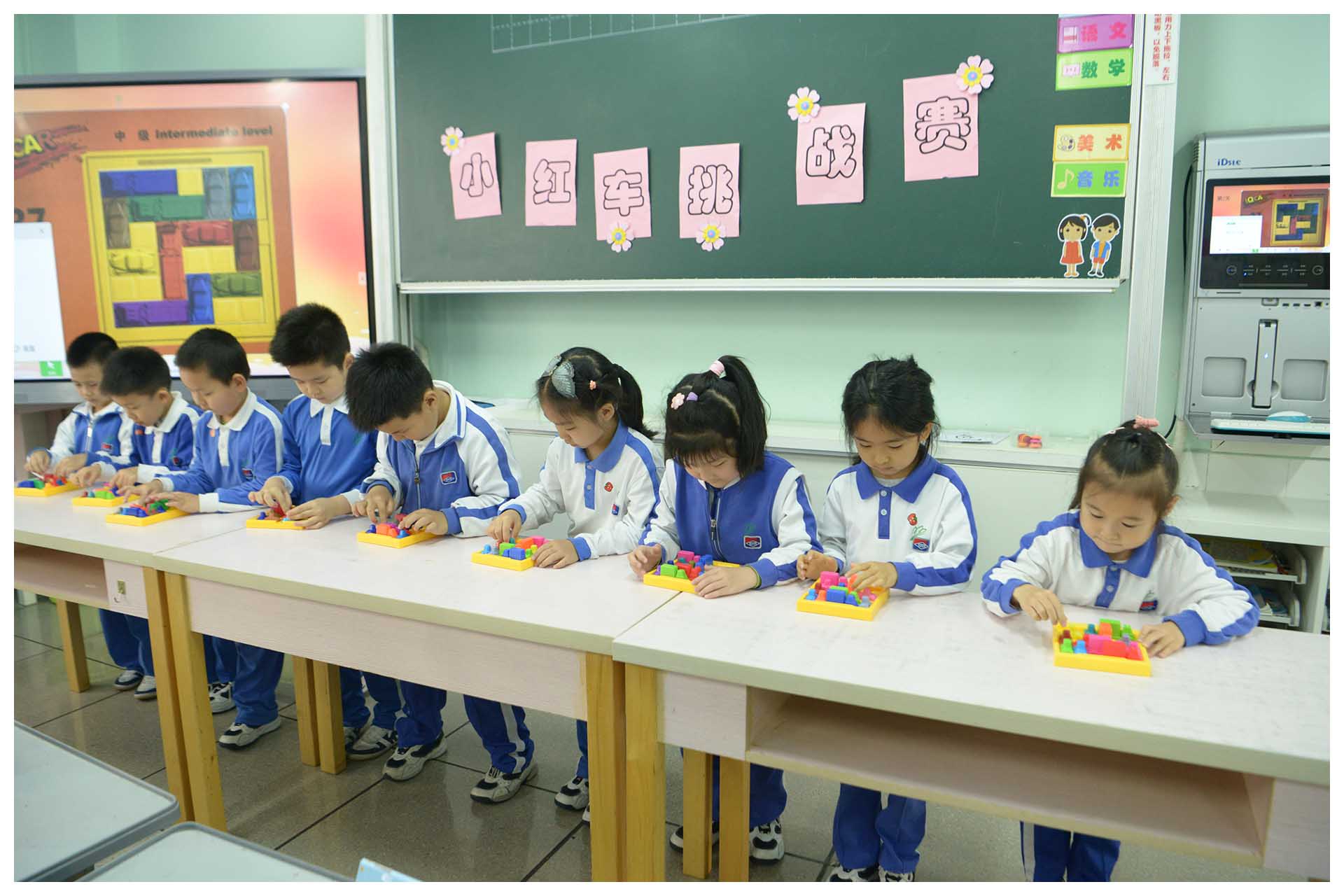 校本课程教育中,低年段开设《智力训练》课程,高年段开展《数学素养》课程,结合中国传统文化中的华容道、九连环、鲁班锁等益智玩具课程、研究性实践作业课程、数学周活动、数学社团等系列校本课程,进一步全面发展学生的数学素养。