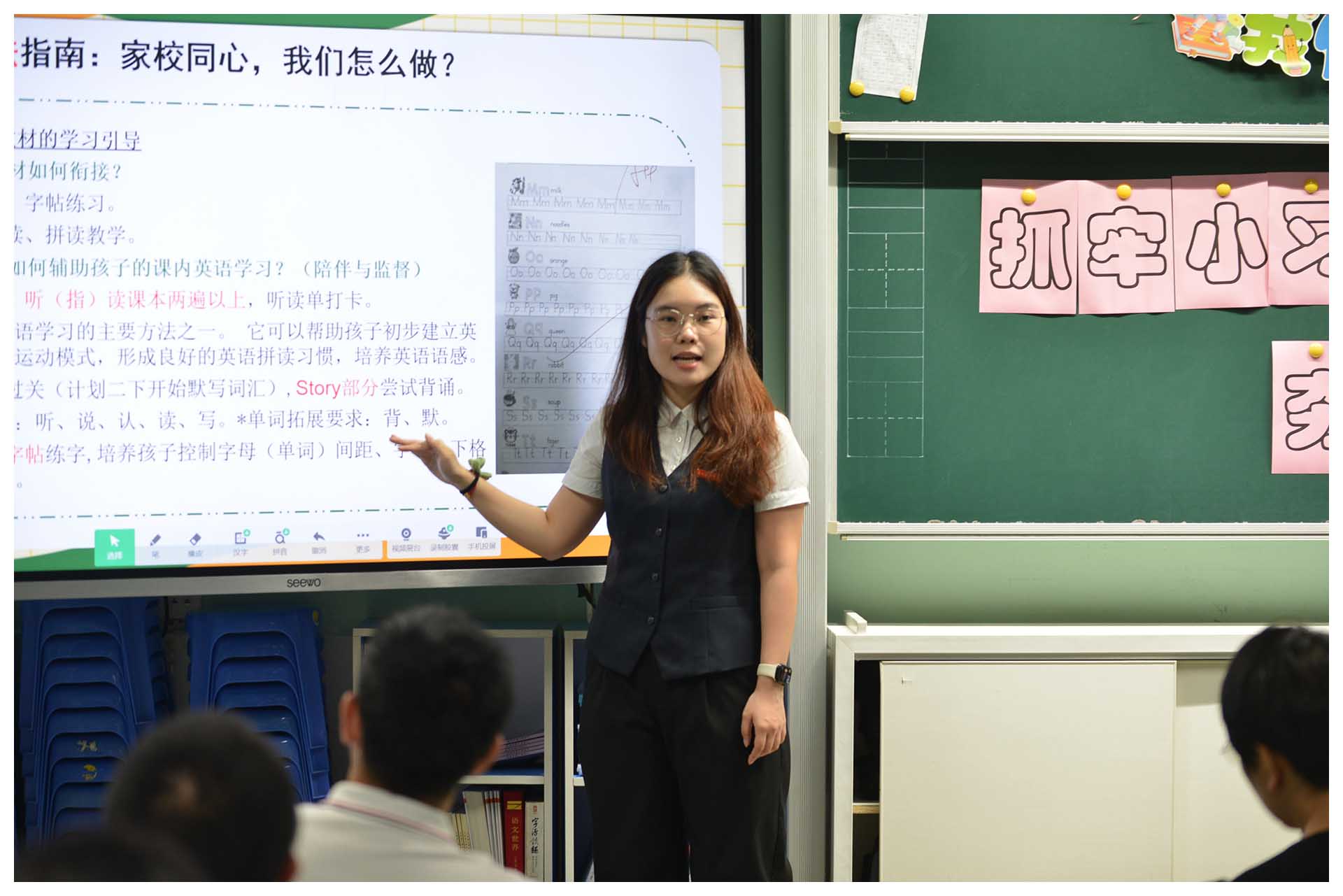 体育学科主任欧天志也详细介绍本学期运动会项目安排,鼓励家长们重视孩子的体能发展,陪孩子养成坚持运动的好习惯。最后的班级交流环节,班主任与科任教师们与家长面对面,围绕孩子的校园适应、行为习惯、情绪状态等话题细致沟通,一句句耐心的解答、一次次真诚的交流,为家校合作筑牢了信任的基石。