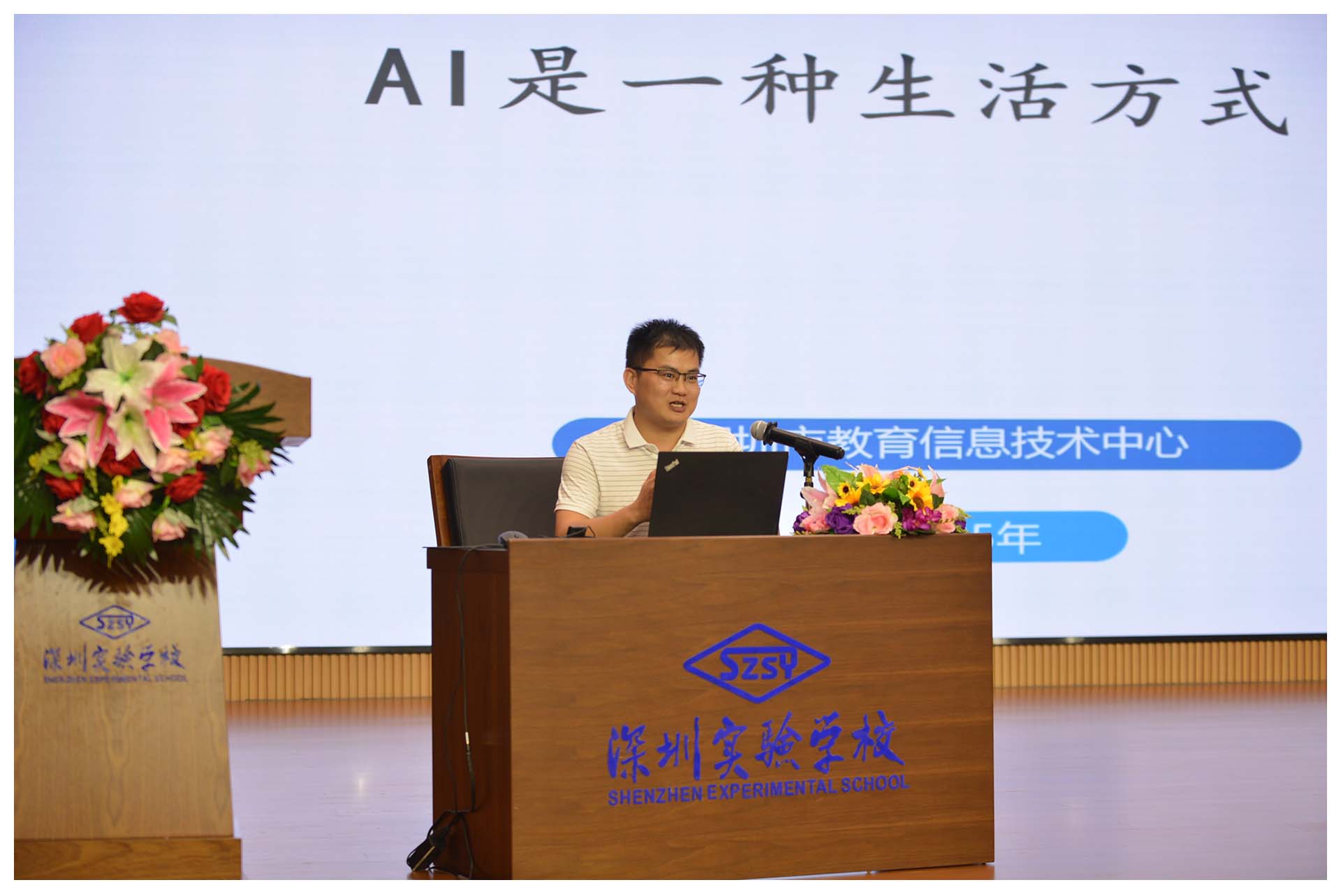 随后,深圳市教育信息技术中心罗晓峰部长带来人工智能应用专题讲座。作为广东省智慧教育名师团负责人,他结合培训课程中15万+人次的学习经验,为教工们解读AI与教育融合的新路径,拓宽了技术赋能教学的认知视野。