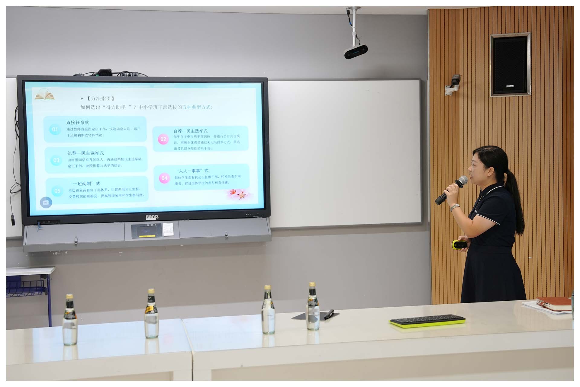 下午2:20,班主任工作培训会在五楼未来教室召开。学生处龚红芳主任与张鸿旭老师分别就新学期班主任工作安排与常规要求作详细说明;青年班主任代表汪彩老师以《读写并行,做成长型班主任》为题作了精彩分享;最后,吴立新校长作总结发言,勉励大家做育人生态园的设计师与工程师,坚持日常要求与爱的滋养相结合,做到立德树人,为党育人,为国育才。班主任团队致力于将管理智慧转化为育人艺术,强化家校协同与团队协作,满怀信心迎接新学期。