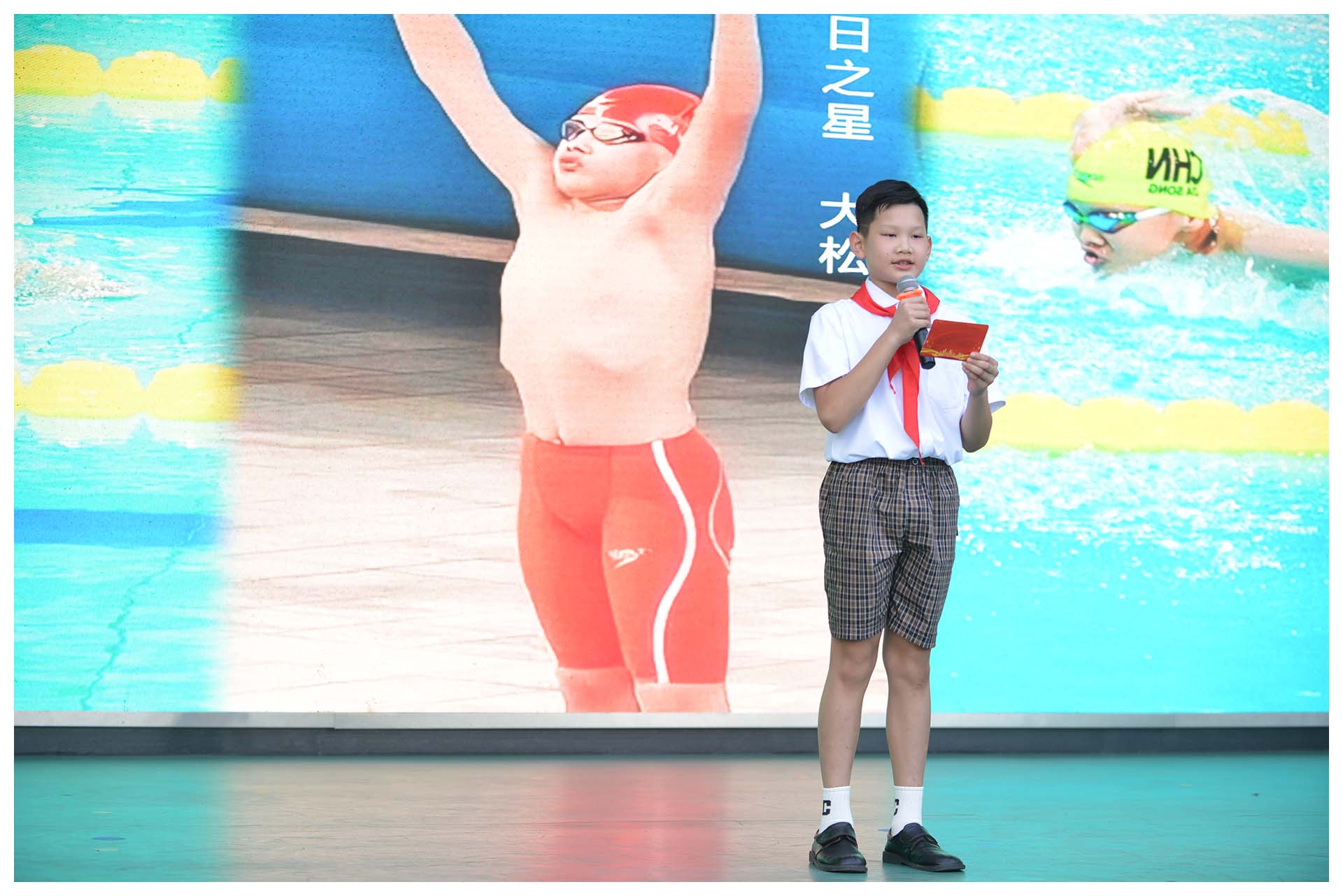 吴立新执行校长的讲话振奋人心,现场互动更是高潮迭起——三年级学生分享“如何做自己的指挥官”,五年级学生讲述“发现问题、解决问题”的真实经历,胡羽松同学也登台畅谈坚持拼搏、追逐梦想的故事,赢得阵阵掌声。随后,六(2)班献上节目《梦想的一定实现》,歌声与舞姿洋溢着蓬勃朝气,感染了全场每一个人。