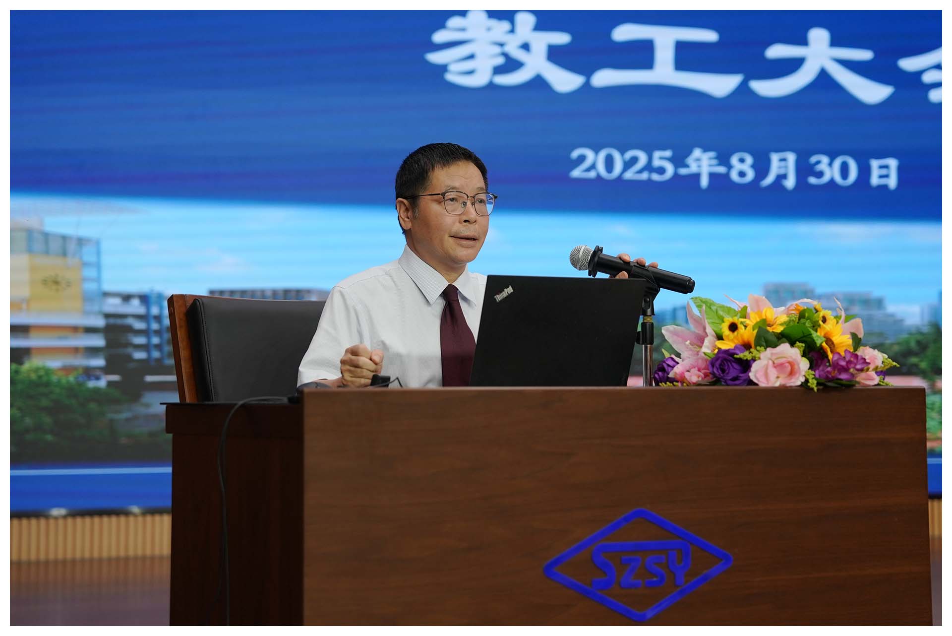 吴立新执行校长以“更高站位,更实举措,更强协同——推动学校育人质量再上新台阶”为题作主题讲座,明确本学期“行动年、提升年、展评年”的定位,从“立足更高站位坚守育人使命”“聚力更实举措深耕教学一线”“组织更强协同凝聚育人合力”三方面部署工作,提出学生在“向解放军学纪律、向奥运健儿学拼搏、向科学家学创新”的学习过程中强化行动养成,并公布“党建引领、队伍强本、校园焕新”等九大工程及分工,为新学期绘就清晰蓝图。