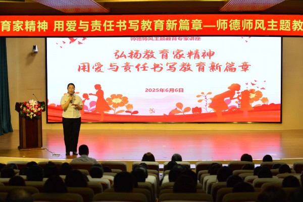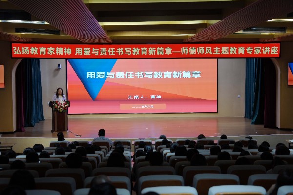 讲座分为三个方面展开:弘扬教育家精神,用责任守护求知梦;践行教育家精神,用初心相伴共成长;秉持教育家精神,爱心铺就融合之路。