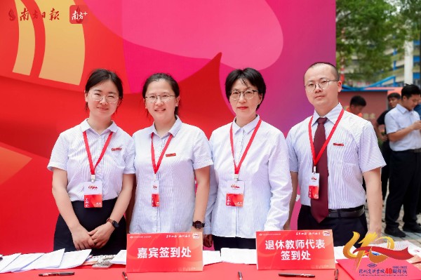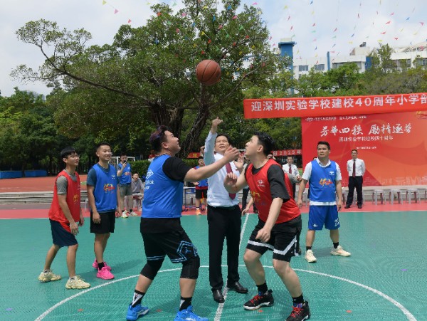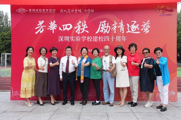 特别欣喜的是,在建校四十周年当天,原深圳实验学校曹衍清校长和冯维悌副校长等老领导带着关怀欣然来到小学部看望教工,勉励小学部勇立潮头把各项工作做得更好。许多荣休多年的实验老前辈也纷纷返回小学部,相聚畅谈实验的昨天和明天;一些不能返回学部的退休领导和教师还打来电话送上关心与祝福。在世界各地求学或工作的校友也返回校园参加篮球友谊赛活动,其中不乏已在国外定居多年这次借着建校四十周年之机专程回国探访校园的一家四口,他们在谈起小学部读书的美好时光时充满着幸福与眷恋。集团党委夏育华书记从百忙中抽空带队来到小学部看望校友并为篮球友谊赛开球。