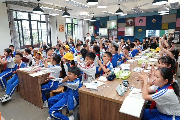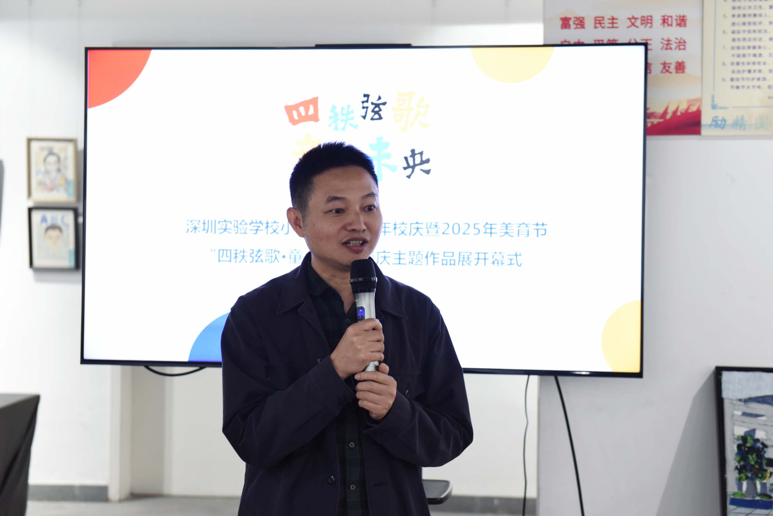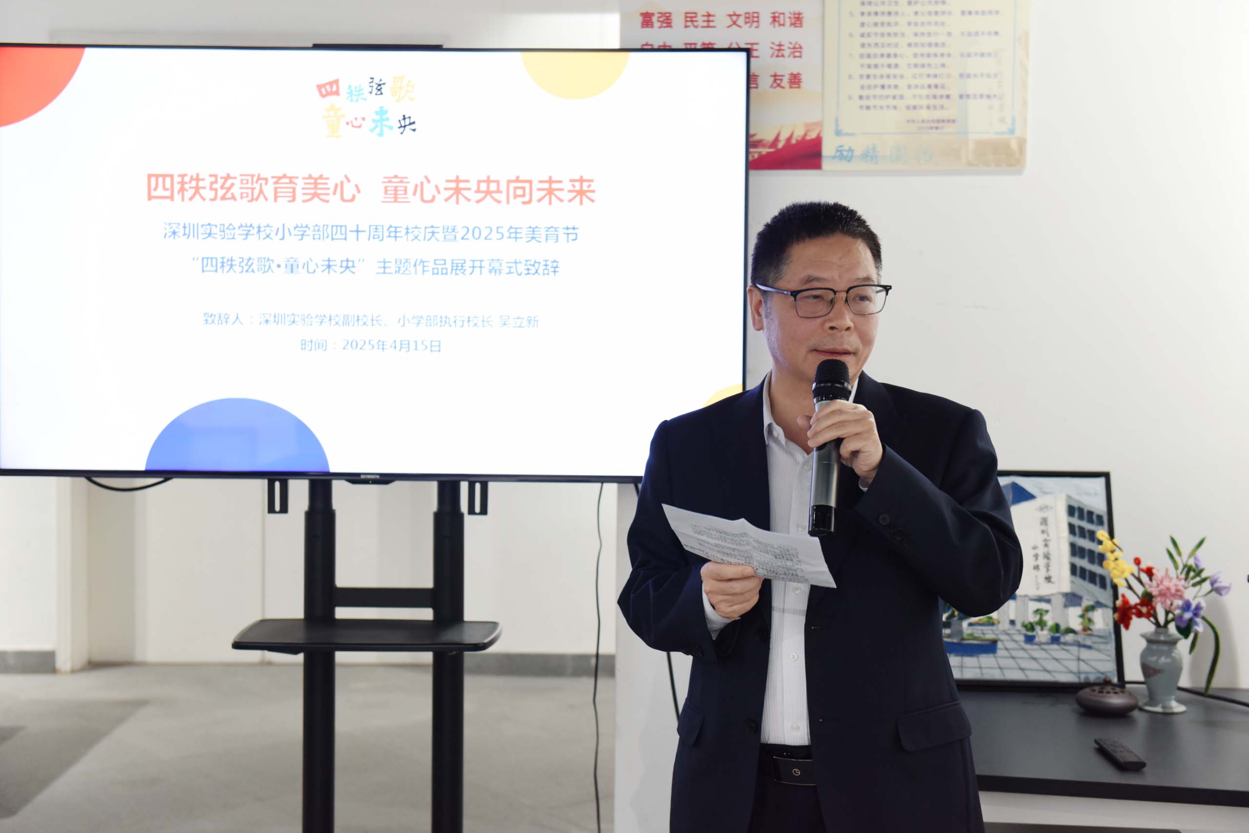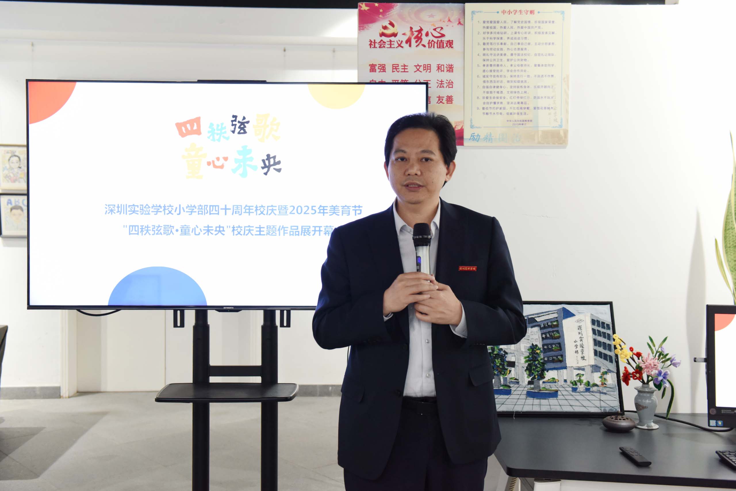 “1985年的陶胚刻痕,2025年的数字纹样,变的是媒介,不变的是实验人对美的信仰。”吴立新校长的致辞让在场者动容;“童心未央的密码,藏在孩子们永远向美而生的眼睛里。”美术学科主任陈蓉老师的发言令来宾们颔首;“愿深圳实验学校小学部在美育浸润的沃土中,绽放更加灿烂的美育之花!”钟国荣老师的寄语如春风拂面。