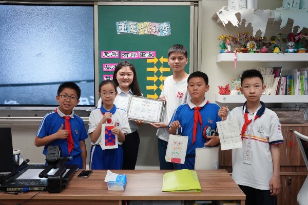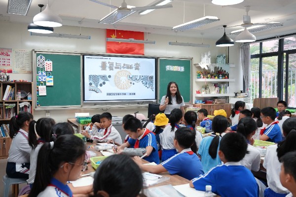 当“美丽中国”支教项目引领饶平县孩子带着大南山的气息,走进深圳实验学校小学部的美术教室,两地学子共执画笔的瞬间便有了特殊的意义。刘丹青老师指导孩子们运用“重复与渐变”的方法,在纸袋上用图案编织美学密码。课程尾声,深饶两地的孩子一起展示自己的课堂佳作,共同创造的美好时光定格在他们绽放的笑颜里。