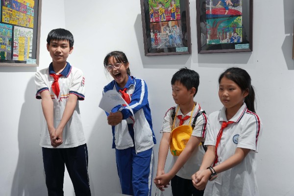 夏育华书记话音清朗,如榕树根脉绵长四十秋,又似木棉新蕾灼灼待放:“我宣布,深圳实验学校小学部四十周年校庆暨2025年美育节【四秩弦歌·童心未央】校庆主题作品展——”他的目光掠过满墙童画,“此刻,正式开幕!”春晨之雨般的掌声响彻全场。