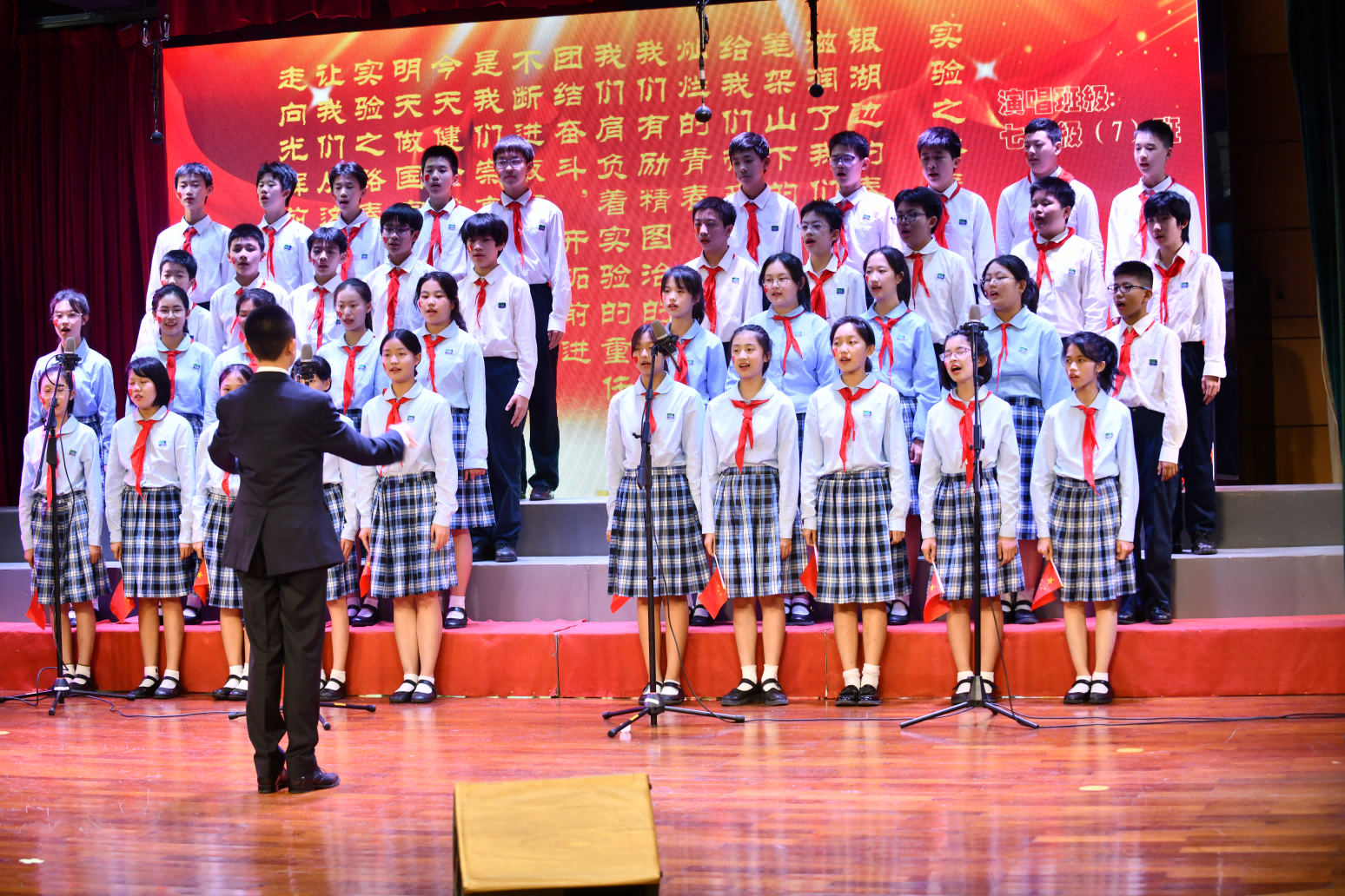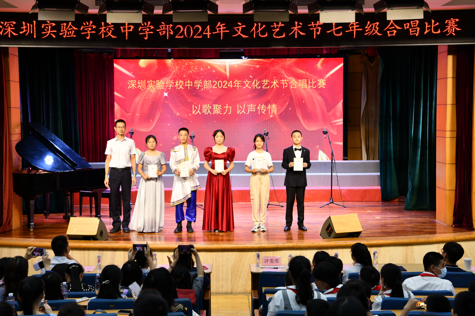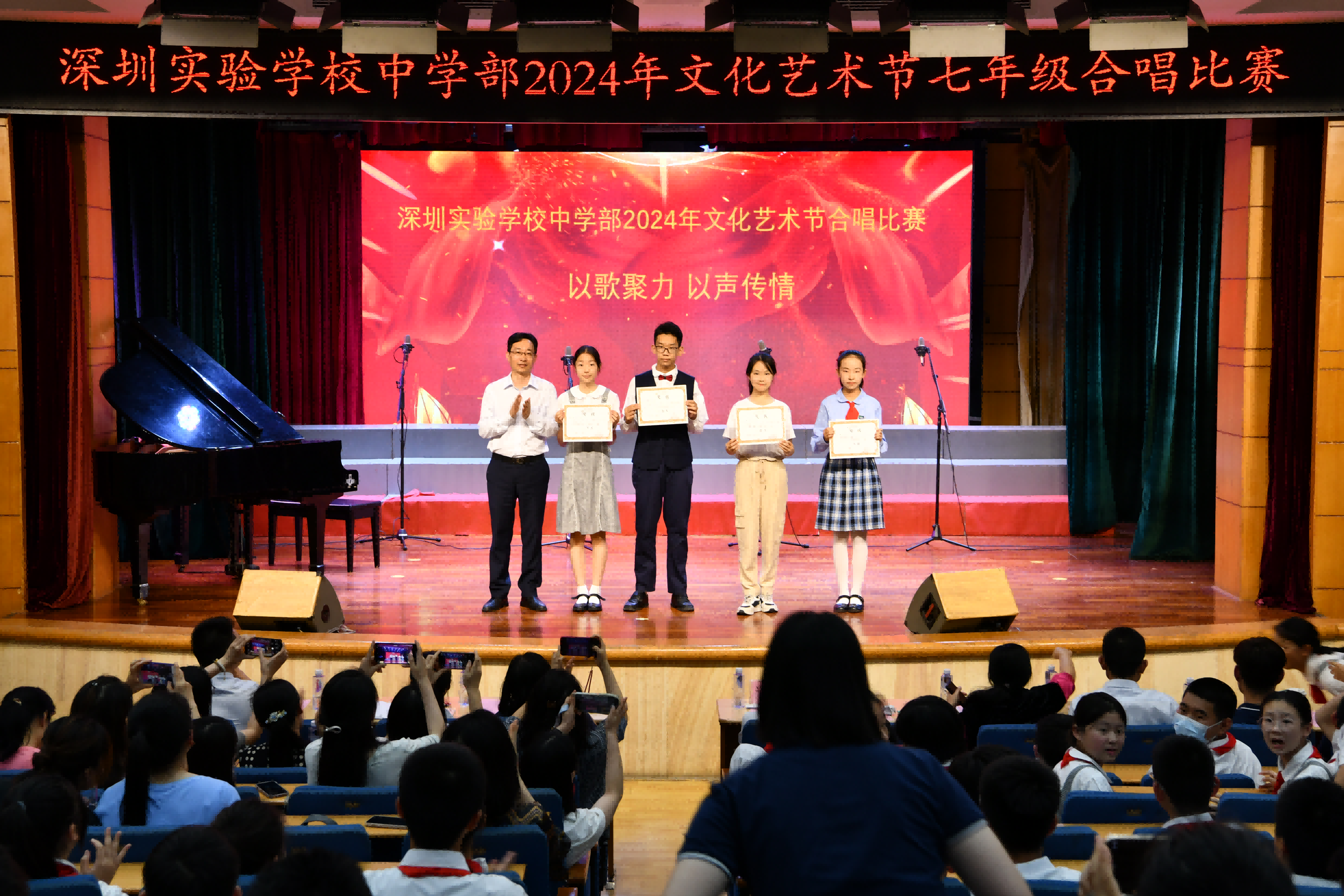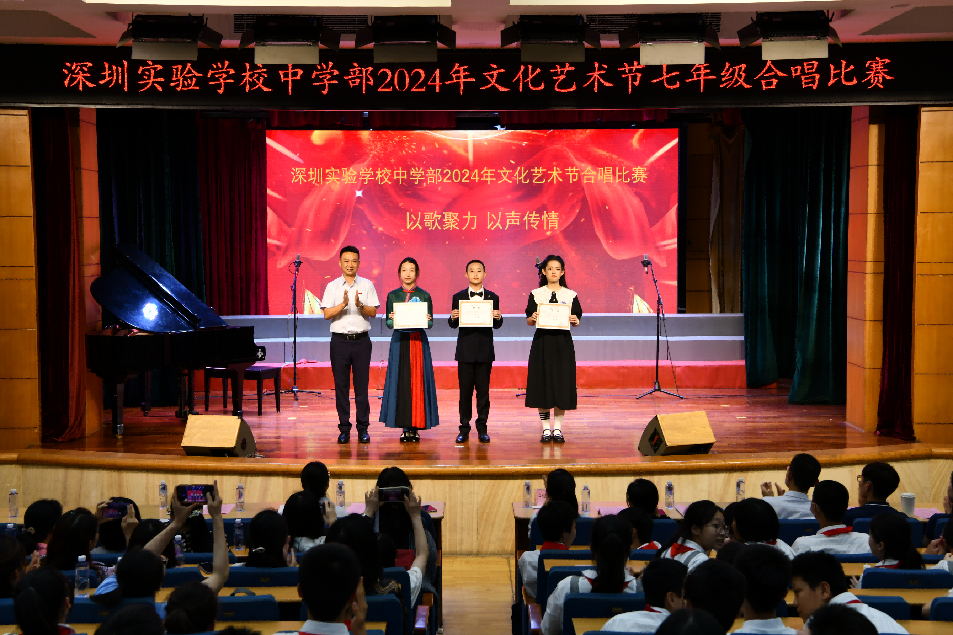 至此,本次班级合唱比赛也落下了帷幕,我们共同见证了一场精彩纷呈、充满活力的艺术盛宴。同学们以饱满的热情和卓越的才华,展现了实验学子的风采,诠释了“以歌聚力,声韵传情”的深刻内涵。(文/七年级(3)班谢沛颐 图片/罗宏才)