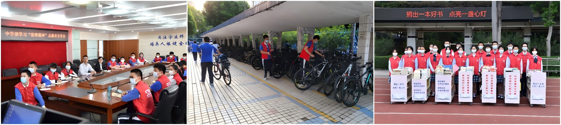 “义心社”志愿服务队是中学部第一个志愿公益类社团,目的在于增强同学们对义工角色及志愿服务工作的认同感和使命感,提升学生对社会、对学校、对他人的责任感,是落实青少年社会主义核心价值观的重要枢纽。其职责涉及到学校的各个角度:单车停放、食堂餐具摆放、校门礼仪、校内运动场管理等。每逢大型活动及节日,如校运会、艺术节、读书节等,都有同学们志愿服务的身影,志愿服务队将全力配合开展各项校园志愿服务工作。目前,中学部每周每班有20余人参加校园常规志愿服务工作校内,每一次志愿服务活动结束后,团委都会定期完成义工时长录入,每学期共有500余名学生参与校内志愿服务,累计计入志愿服务时长超1500小时。每一位中学部的学生,寒暑假都有一项特殊的“作业”,那就是参与志愿服务活动。“奉献·友爱·互助·进步”的志愿服务精神已经在慢慢地融入于中学部每一名学生中,也已然成为中学部的一种文化。