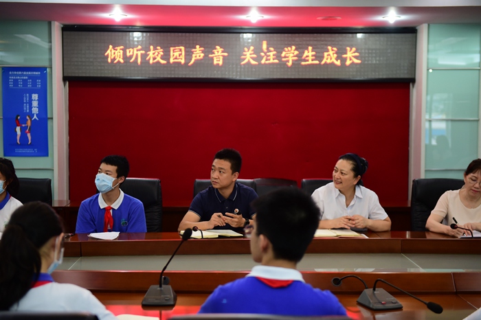 龙校长认真听取了同学们的发言,现场对同学们提出的意见和建议进行了耐心的解答,并感谢学生代表们用心、仔细观察校园,认真思考、关注学校发展。对急需处理、可行性强的建议,当场办公,提出解决办法,赢得了学生的热烈掌声!同时,龙校长也希望同学们在日常的校园生活中随时都可以向老师、学校提出建议和反映诉求,主动与学校进行交流,共同为学校的发展献言献策。整场活动气氛热烈,同学们的意见建议得到了表达,受到了重视,收到了反馈,大家十分高兴和满意。在座谈会上龙校长还责成相关部门就学生们提出的有关建议进行实地调研,尽快提出整改方案。学校各部门负责人迅速记录问题,第一时间进行整改,如此雷厉风行的工作作风得到了同学们的高度好评。