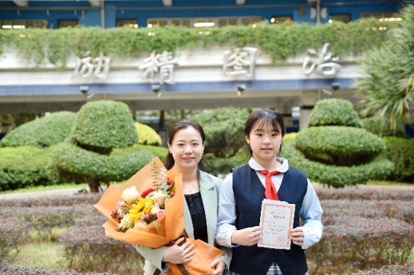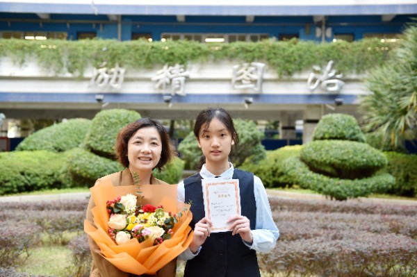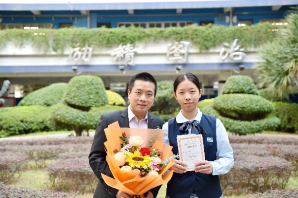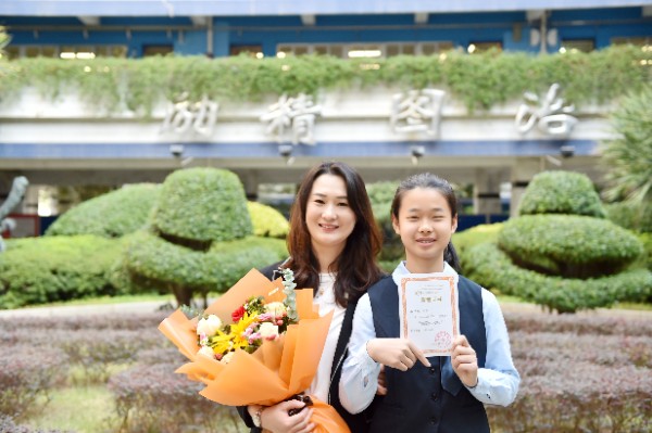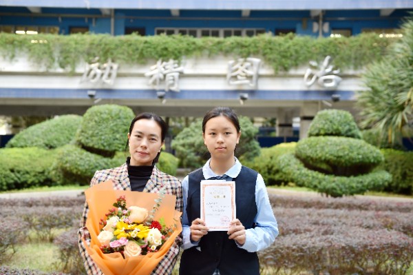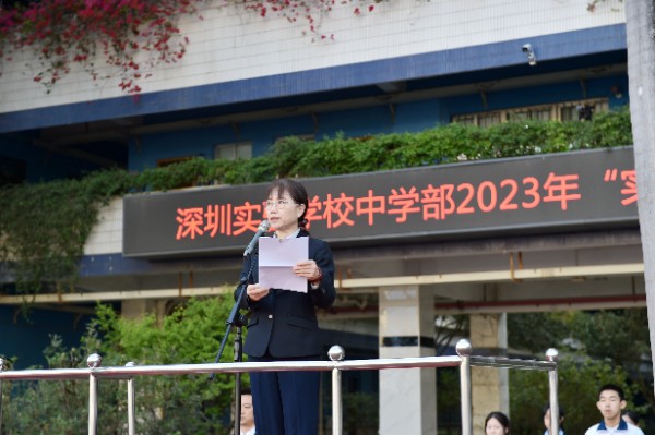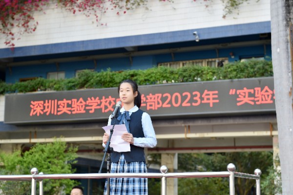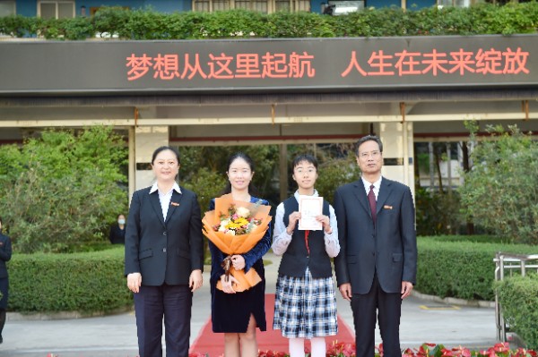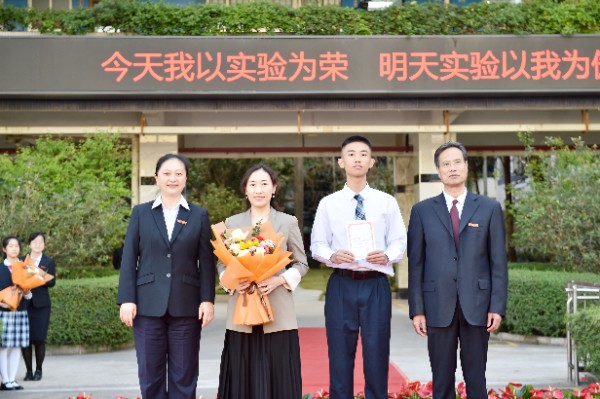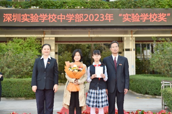 随后,深圳实验学校校长衷敬高依次为“实验学校奖”获奖学生颁发奖状,副校长、中学部执行校长龙萍为获奖学生家长献花祝贺。正值青春少年的他们必将不负韶华,勇毅前行,不断进取,永不满足。仪式上,九年级(9)班周子欣同学作为获奖学生代表上台发言。她表达了对学校、家长、老师以及同学的感谢,分享了学业进步经验和多彩活动的感悟。她号召同学们践行实验精神,敢于肩负时代使命, 勇于扛起未来国家重担,为祖国蓬勃发展的春天而奋斗。