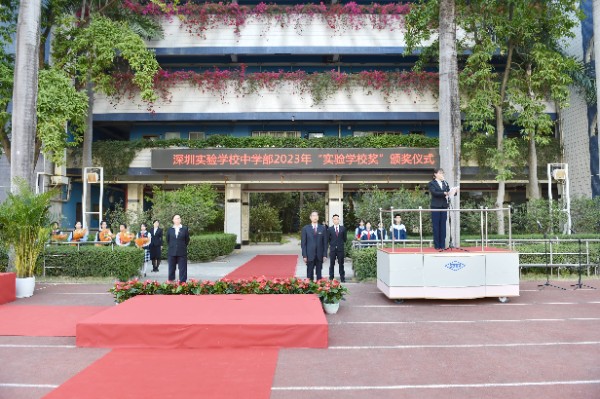 人间最美三月天,实验校园风光好。在全国两会召开之际,中学部也迎来了一年一度的“实验学校奖”颁奖仪式,深圳实验学校校长衷敬高,副校长、中学部执行校长龙萍,中学部全体师生以及获奖学生家长齐聚运动场,共同见证这一荣耀时刻。“实验学校奖”是实验学子在校期间获得的最高荣誉,是实验学子青春奋进的象征,更能激励全体实验学子向榜样学习、与榜样同行。