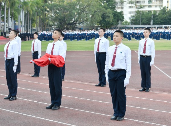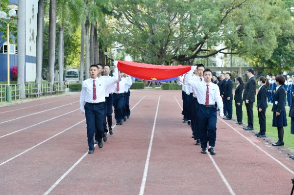 仪式最后,中学部为获奖学生和家长升起了光荣的实验校旗。实验校旗在空中迎风飘扬着,深蓝色的旗帜是实验的文化与精神。今天我以实验为荣,明天实验以我为傲!