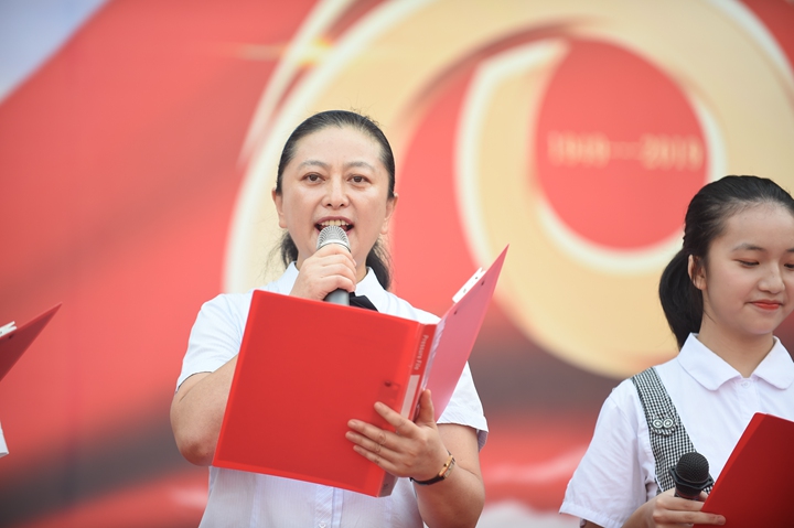 大会最后,全体师生和家长代表振臂高呼“祝福祖国:生日快乐!再铸辉煌!”余音绕梁,久久不绝,学子似乎意犹未尽,久久不愿离去。