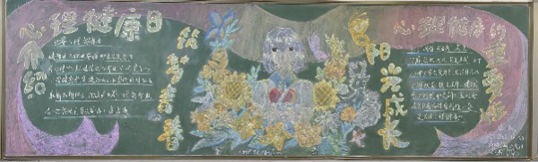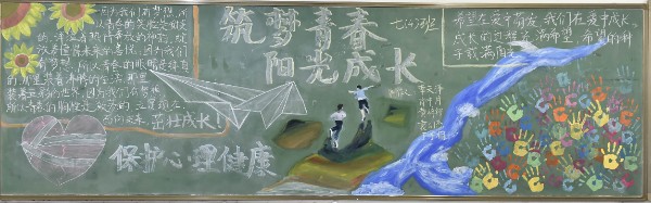在普及心理健康教育知识方面,首先,在东楼一楼前厅,设置了心理知识系列展板。展板包括:了解大脑的秘密,拥抱的益处,提高自控力的方法,如何调整低落的心情,心理放松技术,建立能量库,心理书籍推荐,心理咨询热线和“心理委员说”等九个部分。其中的“心理委员说”版块,七年级和八年级每班的心理委员也都参与其中,各抒己见。从心理委员的角度,作为朋辈,告诉同学们,怎样调节情绪,怎样拥有积极的心态,怎样成为更好的自己等等。其次,在西楼电子屏上,播放心理相关视频,以及心理知识宣传语,营造关注心理健康的校园氛围,让学生勇于面对挫折和挑战,更好地成长。第三,心理主题黑板报,以“筑梦青春,阳光成长”为主题,各班设计并绘制了具有班级特色的心理健康主题黑板报,让学生有意识地关注青春期的身心变化,了解更多的心理健康知识。