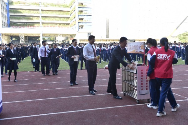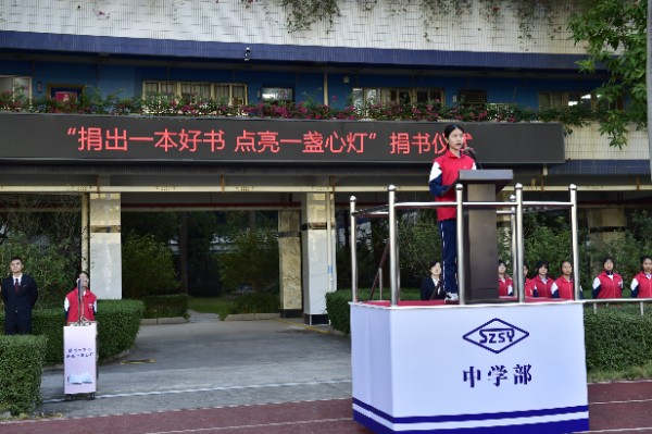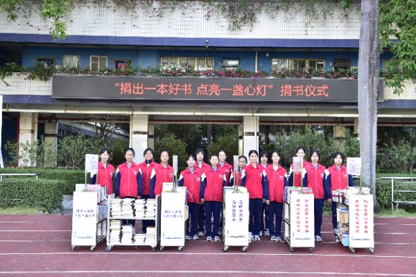 11月20日晨会,在运动场举行了经典书籍我捐赠——“捐出一本好书 点亮一盏心灯”捐书仪式。