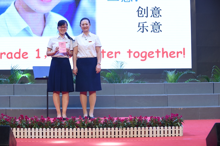 年级主任、班主任拜授仪式隆重热烈、高潮迭起。年级主任、班主任老师依次登台,从龙校长手中接过聘书,接受龙校长的拜授,各位年级主任和班主任铿锵有力地回答:“我会尽心尽力工作,请校长放心!”“我会努力工作,请校长放心!”这是老师们发自肺腑的教育誓言,是老师们用心向学校做出的庄严承诺,更代表了一个个自省自励、奋发进取的职业态度,一个个充满教育理想的教育梦。