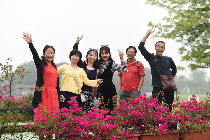 午餐后,我们前往梦里水乡百花园。那时,天空中下起淅淅沥沥的小雨,但丝毫没有影响老师们游园的心情。老师们坐在红色的观光小火车上,伴随着小火车的轰鸣声和园区内“恐龙”的声音,在若有似无的朦胧烟雨中,游览百花园。在美丽异木棉、黄花风铃、宫粉紫荆的花海里,老师们沉浸其中,女教师们在花海中欣赏时,男教师们则拿起相机“咔哧咔哧”记录下此刻人与自然和谐相处的一幕幕。