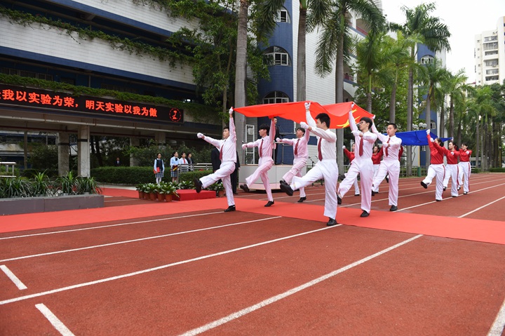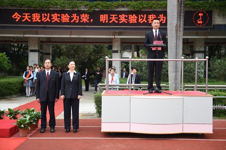 最后,为获奖的同学升起了光荣的实验学校校旗,今天你以实验为荣,明天实验以你为荣。