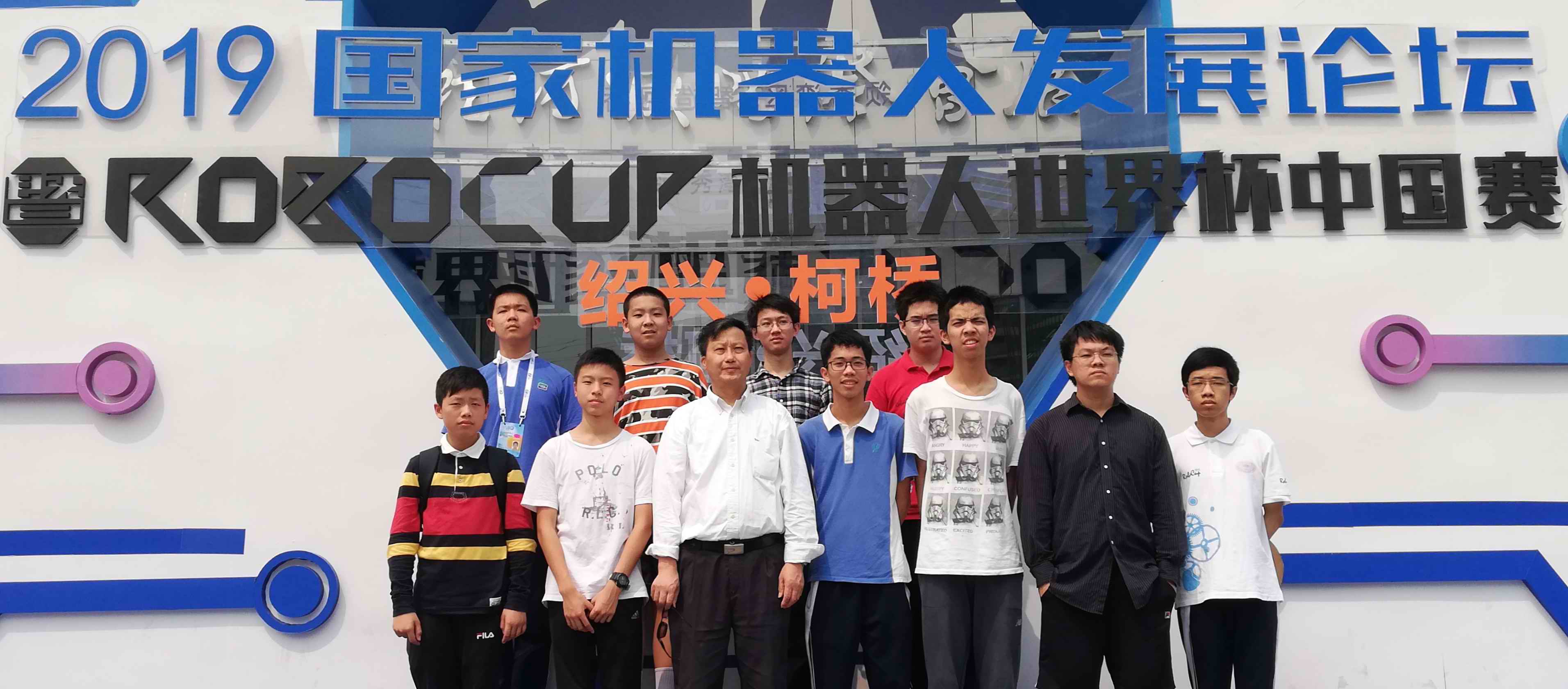 4月18—21日,由中国自动化学会、绍兴市柯桥区人民政府主办,RoboCup中国委员会等承办的2019 RoboCup机器人世界杯中国赛在浙江绍兴柯桥中国轻纺城国际会展中心顺利举行,来自全国25个省(自治区、直辖市)和香港、澳门,以及日本、韩国共500所学校的522支代表队2783名师生参加比赛。经过三天的激烈角逐,我校机器人社团成员高中部的杨勋昊、廖桐舟、曾柏霖,光明部的陈秉谦、陈品儒和中学部的张津铭、郭轩宏、李昀昊、姚思瀚、欧阳谦获得机器人足球项目轻量组殿军。