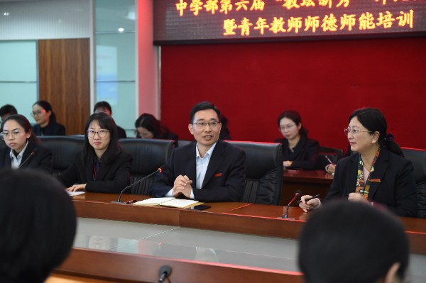 为促进青年教师专业发展,提升青年教师素质和专业自信,营造“以赛促教、以赛促改”的教学氛围,2021年12月7日下午,深圳实验学校中学部于北403会议室召开2021年中学部第六届“教坛新秀”评比活动总结暨青年教师师德师能培训会,龙校长、王兵主任、潘浩主任及各学科主任、全体青年教师参加。