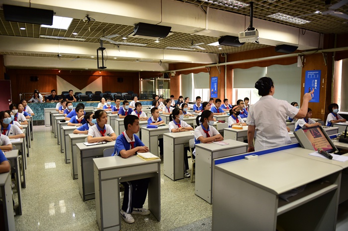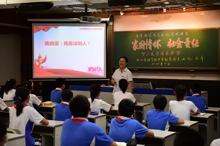 中学部党总支书记龙萍为学生上思政课