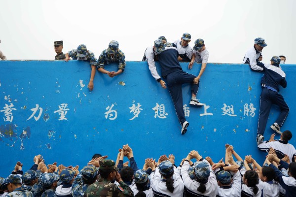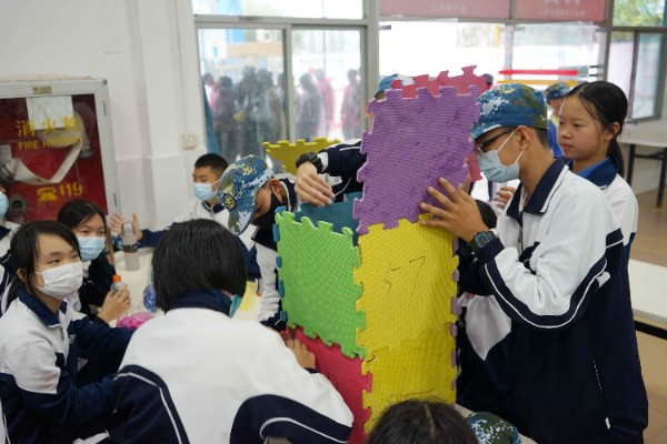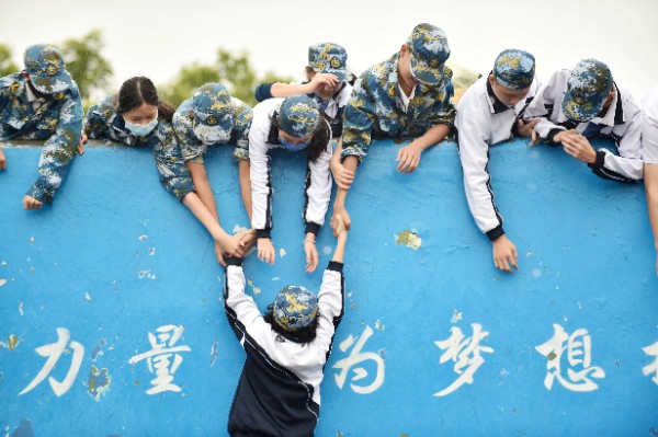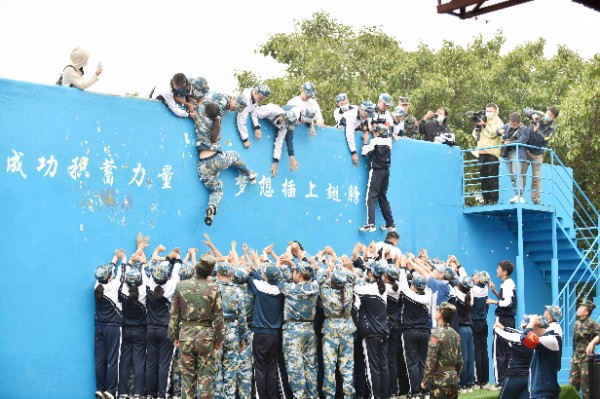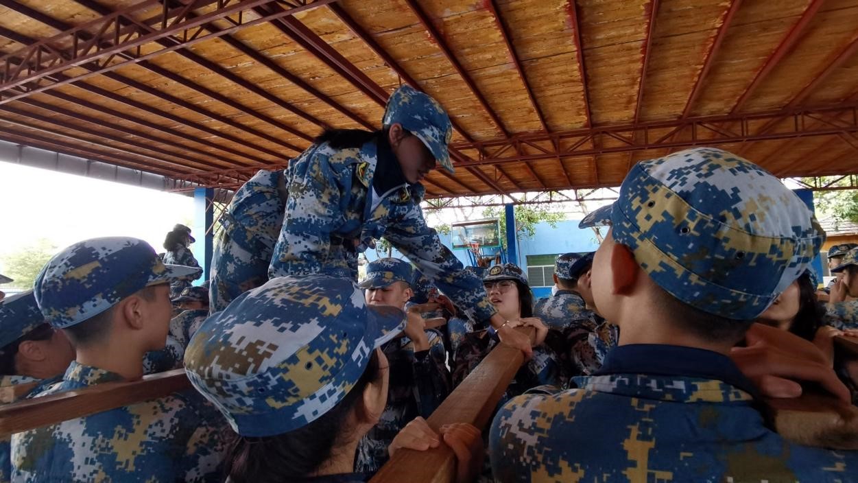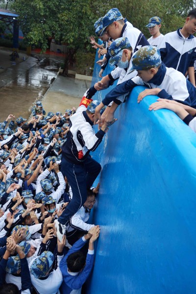 而成功墙活动,则让我们见证了跨越班级的互帮互助的友谊。同学们按照“站桩”和“跪桩”的角色分工,服从指挥、任劳任怨、不断调整和轮换角色,爬墙虽然不易,但在所有同学的不懈努力下,我们所有人都成功翻越了这堵高墙。未来人生路上,我们也将遇到如这高墙一般的困难,但只要我们如同今日这样坚定信念、团结合作,就一定能成功翻越每一堵高墙,走向一个又一个胜利。