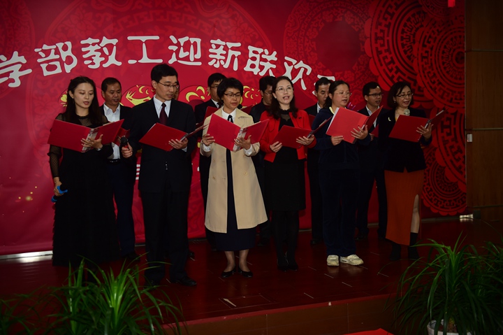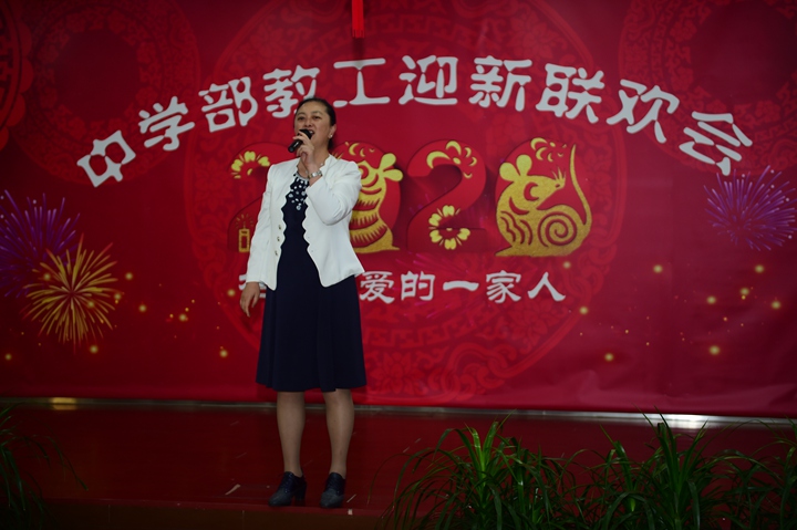 梅花迎冬开,欢歌庆新年。伴随着冬日里温暖的阳光,满怀着喜悦的心情,中学部于2019年12月31日在西楼多功能厅举行教工迎新联欢晚会,晚会由彭启嘉和朱容秀老师主持。