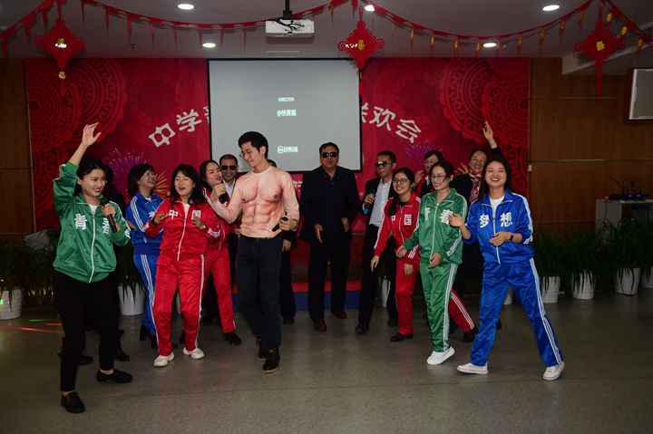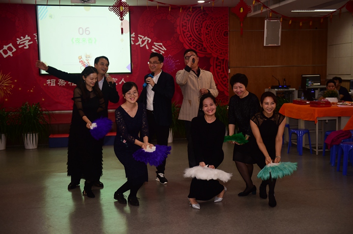 美美的晚餐过后,在龙萍副校长热情洋溢的新年祝福中拉开序幕。在本周一的晨会上,龙校长就带领全体教职工一起回顾2019年的国家大事,庆新中国70华诞、十九届四中全会开辟“中国之治”道路、澳门回归祖国20周年等。在联欢晚会上,她细数了中学部2019年的工作,教育教学工作稳步推进,“三节一周”活动课程精心设计、异彩纷呈,学科教研、课堂教学扎实高效,后勤服务工作落实到位,特别是安全工作。龙校长充分肯定并感谢为学校建设和发展辛勤耕耘的全体教工,并对大家表达最美好的新年祝福,激励大家以“深圳示范 实验先行”为责任和使命。