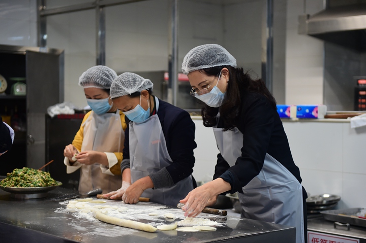 饺子,取“更岁交子”之意,象征着喜庆团圆、吉祥如意。每年迎新年的“包饺子”活动异常火爆,12月31日下午,大家齐聚食堂一楼的点心房,从准备面团、活馅儿、擀面皮到包饺子、下锅煮,这一道道的工序凝结着集体的力量。饺子的每一道褶儿,凝结着大家对实验深沉的爱和祝福。