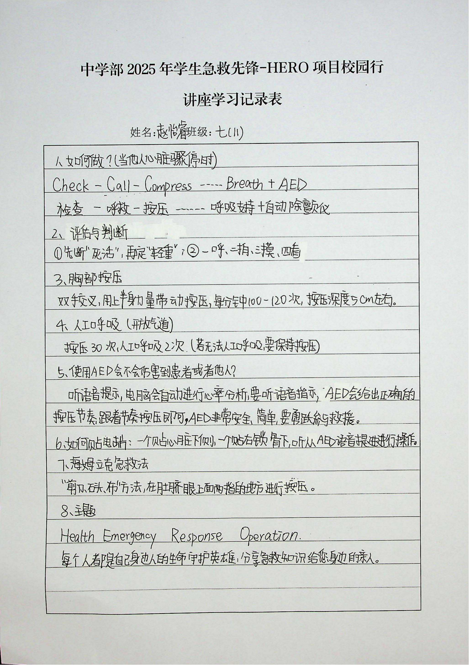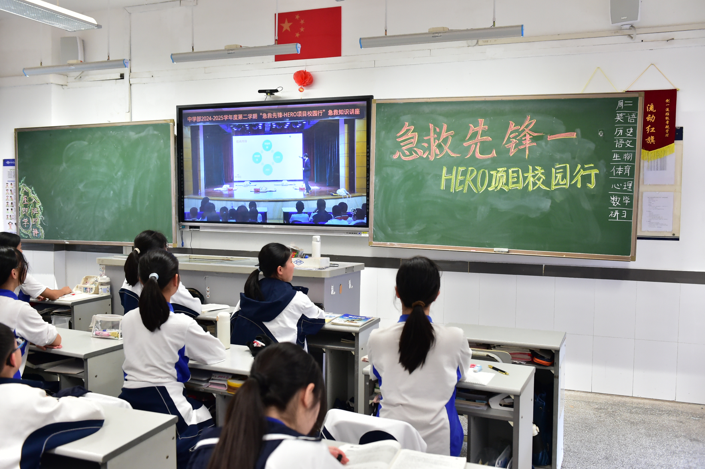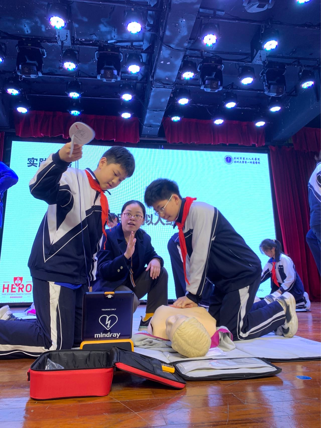 为加强学生急救知识和技能,筑牢校园生命防线,3月11日,中学部邀请了深圳市第二人民医院(深圳大学第一附属医院)主任医师、技能中心项明方主任,为七年级师生带来了“急救先锋——HERO项目校园行”急救知识讲座。