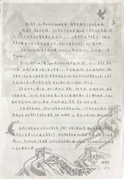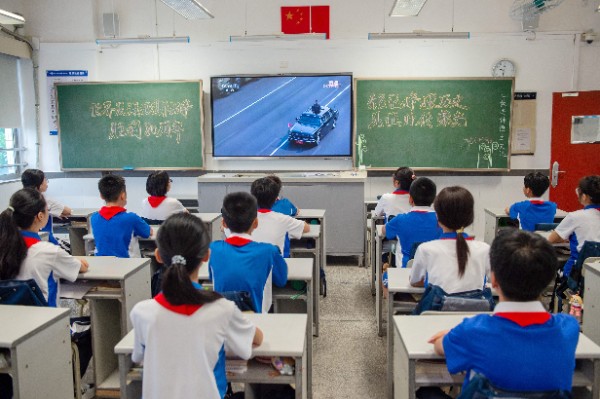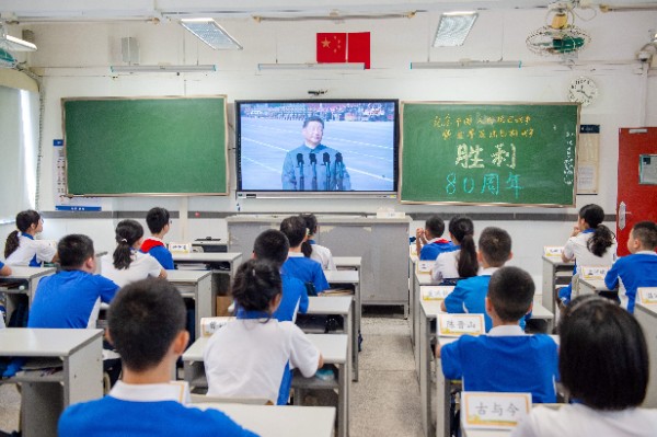 9月3日9时,中学部全体师生通过转播全程观看纪念活动直播,同学们深受鼓舞,挥笔写下感想,立志铭记历史,奋发图强。