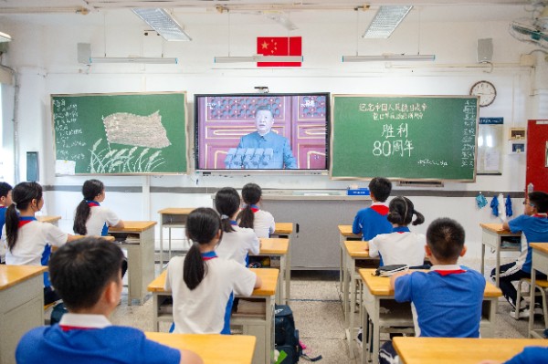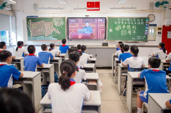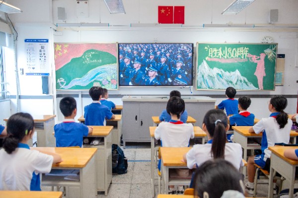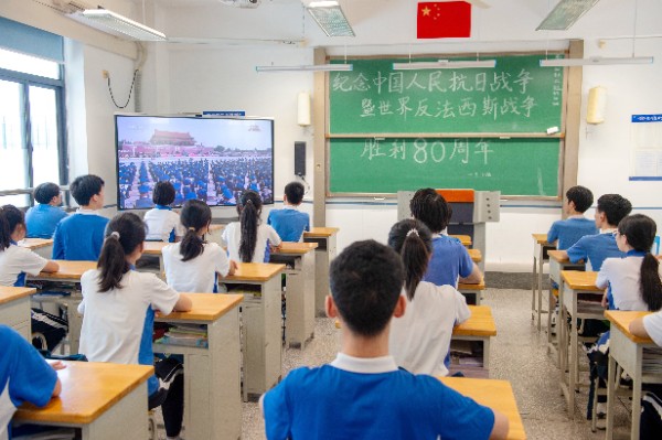 纪念中国人民抗日战争暨世界反法西斯战争胜利80周年大会于9月3日在北京天安门广场隆重举行。为加强学生的爱国主义教育,9月1日-3日,各年级、班级组织开展了系列纪念活动。