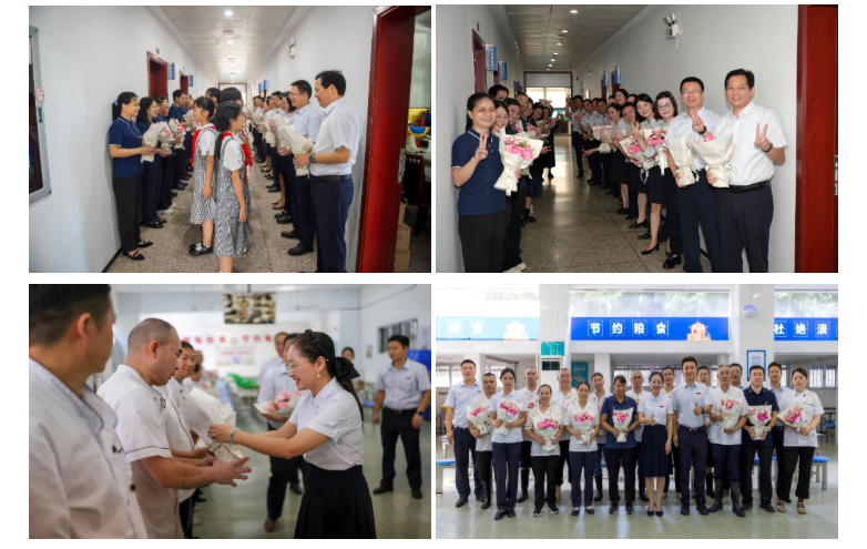 仪式结束后,少先队员代表为集团老师们送上祝福,校领导也为食堂员工送上了节日的祝福。