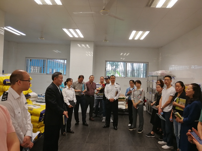 程永甲主任带领大家参观中学部食堂并介绍了中学部食堂的基本情况,同时还耐心解答与会人员提出的问题。