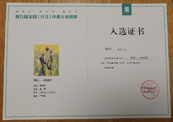 《深圳·5G时代》已在2020年12月入选中国美术家协会主办的国家级展览——全国中青年油画展。