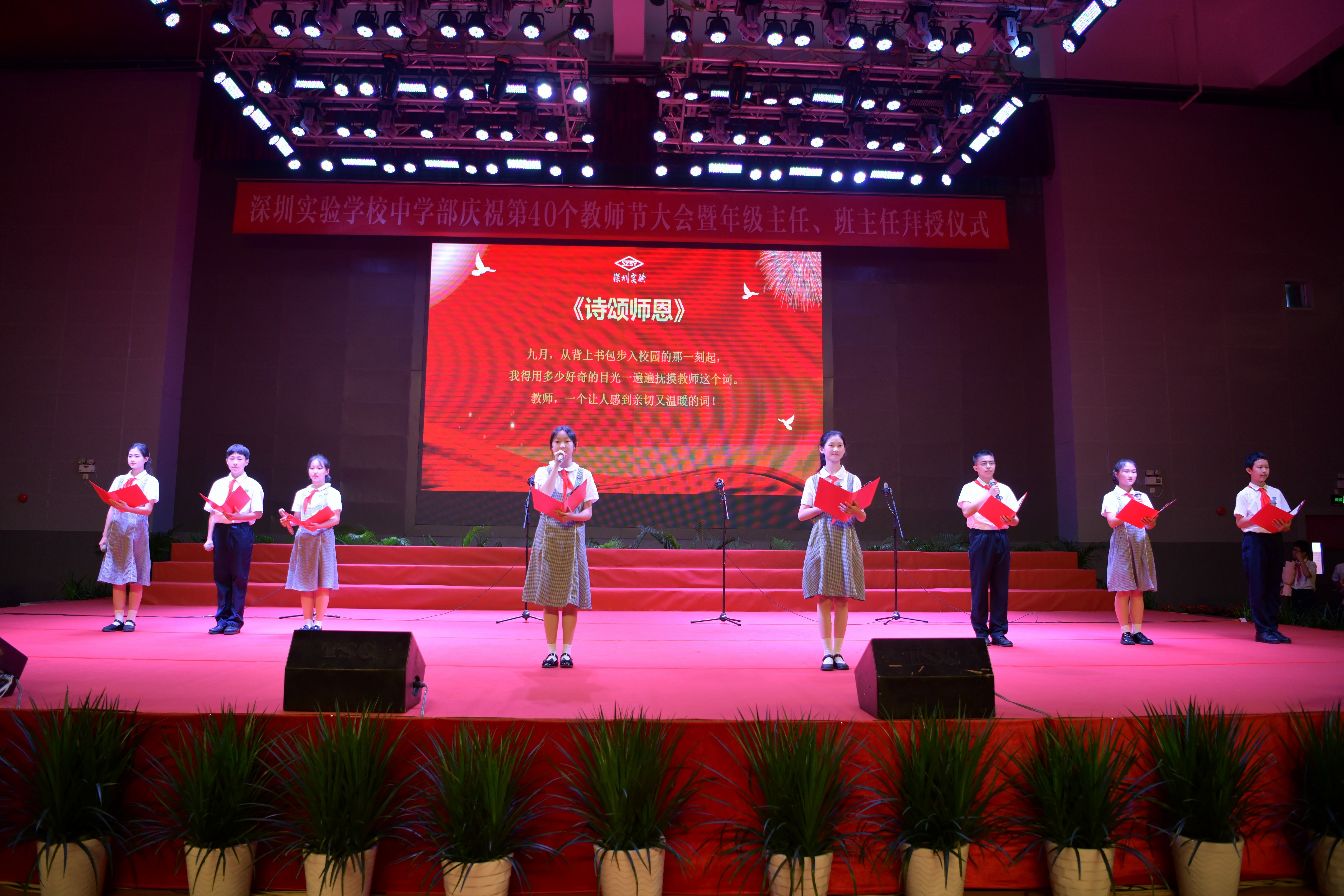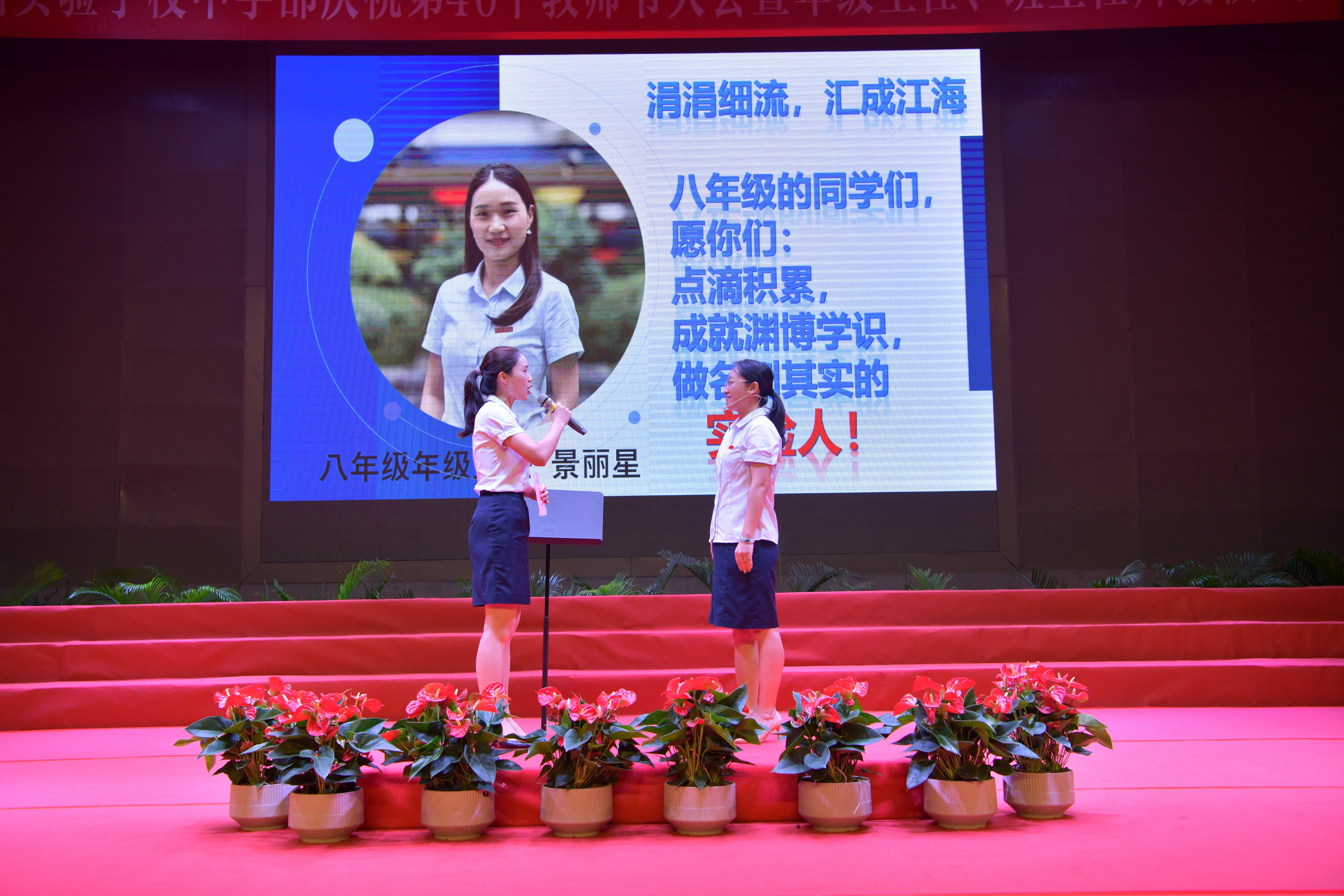 9月金秋,硕果累累,正值第40个教师节来临之际,中学部于9月10日上午8:00在文体馆隆重举行了庆祝第40个教师节大会暨年级主任、班主任拜授仪式。此次活动由学生处熊珊主任主持,全校师生共同参与,庆祝这一充满温情与敬意的节日。