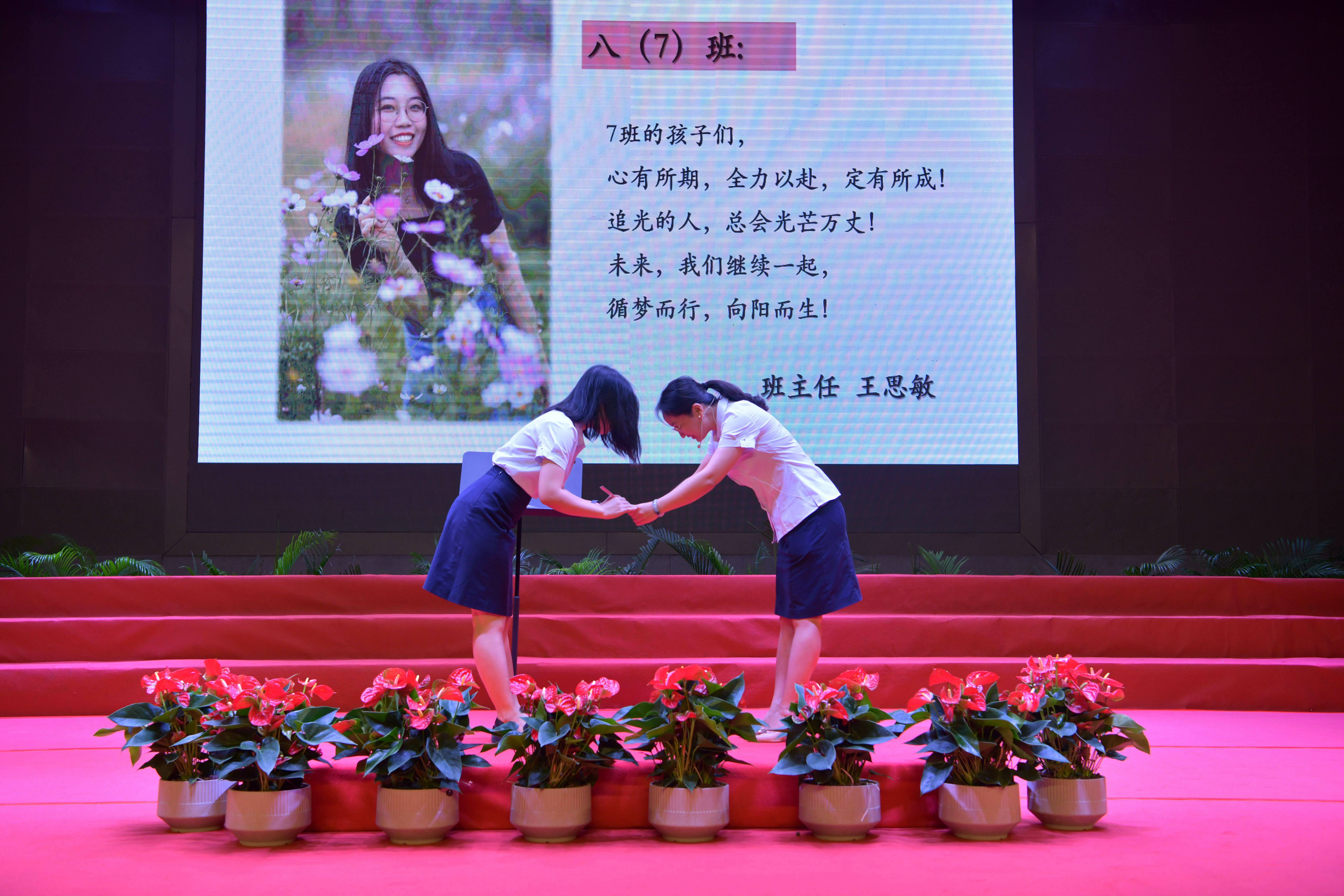 随后,年级主任、班主任拜授仪式隆重举行。邓娟校长为4位年级主任、30位班主任一一颁发聘任书。校长一声声“拜托了”,老师们一句句“请校长放心”,让现场的学生和家长们都感受到了学校对老师们的殷切重托与深切信任,体会到了老师们对职业使命的郑重承诺和坚毅担当。