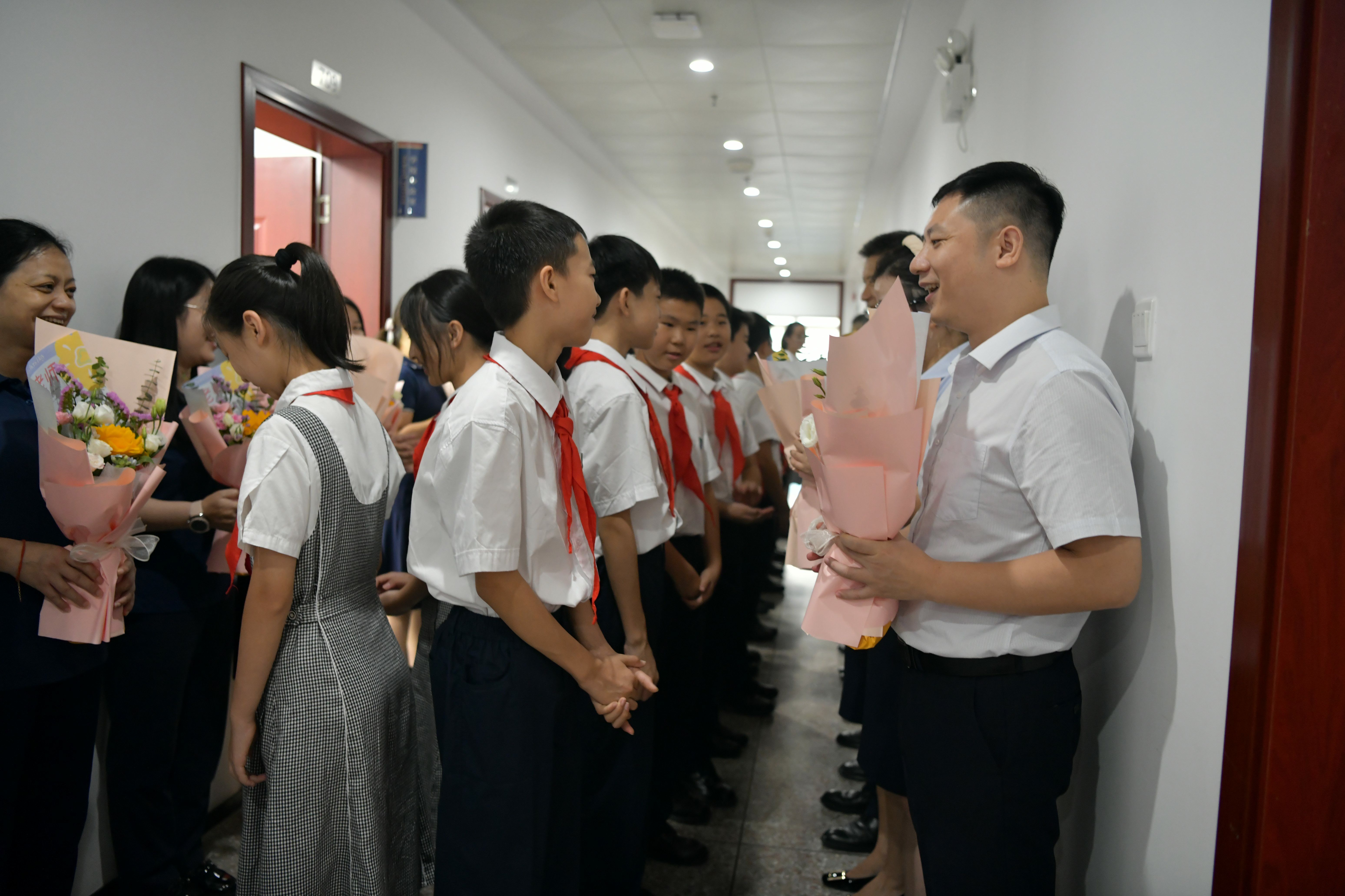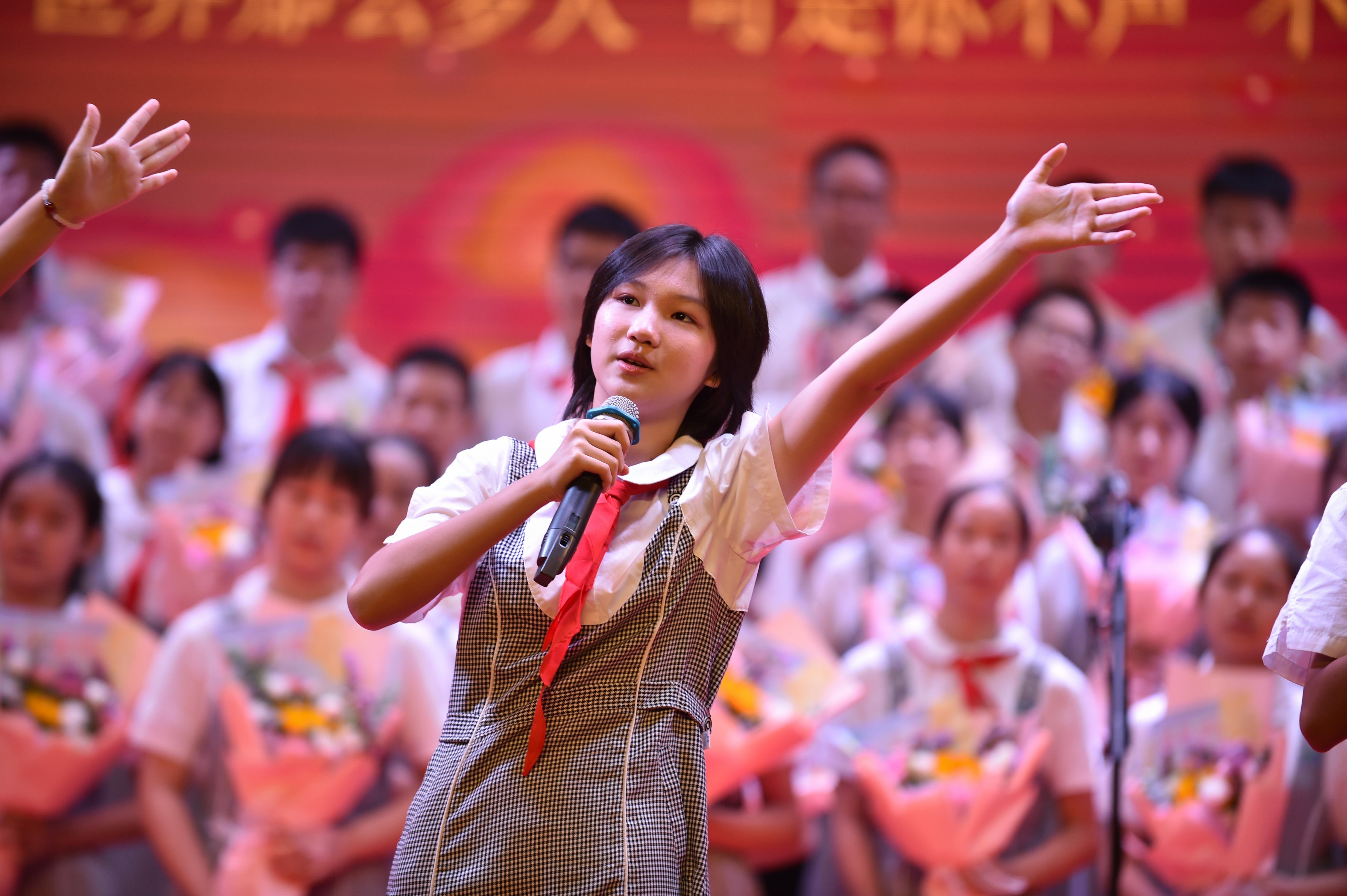 校友团成员和少先队员代表手捧鲜花向老师献上祝福,朵朵鲜花代表着对老师的爱戴和节日的慰问。最后,全体师生共同唱响实验校歌,大会在喜庆热烈的氛围中落下帷幕。