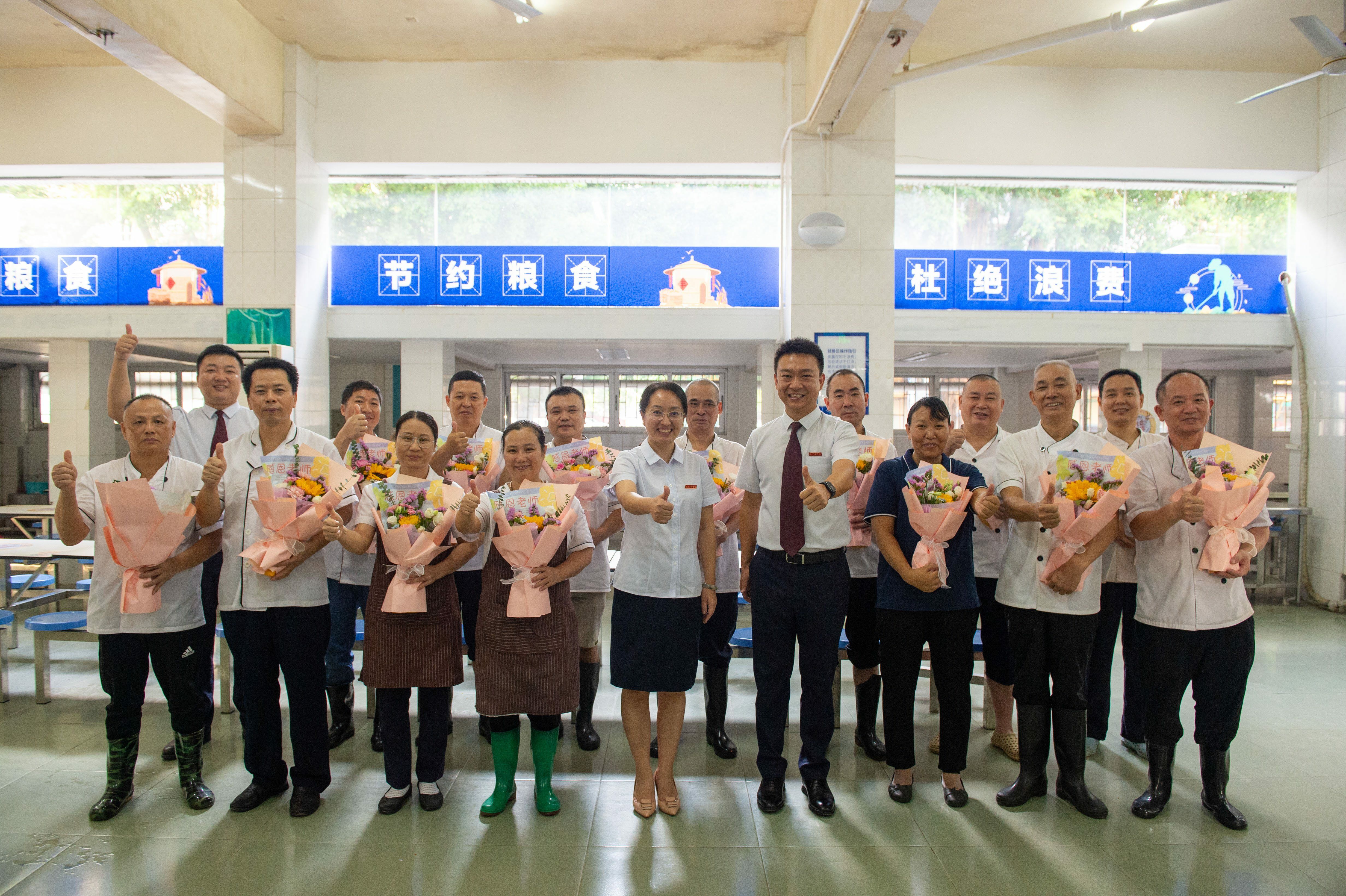 仪式结束后,少先队员代表为集团领导送上了真挚的祝福;邓娟校长和杨宁主任也为食堂员工送上了节日的祝福。