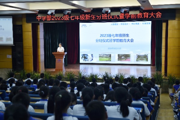 新学年开学工作的顺利进行,离不开全体教职员工的共同努力。开学前,中学部举行了全体教工大会,会上杨宁主任回顾了中学部各部门假期工作,对中学部本学期教育教学工作做了详细的部署。他指出要将学校文化、精神、理念以及中学部特色持续化发展;要将学校管理、集团办学以及中学部工作依法依规标准化实施;要将制度规范、教育教学以及中学部师生要求常态化落实;要将育人育师、终身发展以及中学部师生成长精致化呈现;要将实验特色、影响力高点以及中学部优势品牌化辐射。此外,教务处召开了学科主任会、九年级教育教学工作交流会,对新学年各学科的教学工作以及九年级中考备考工作提出了要求。学生处组织了七年级新生分班仪式和各年级学生学前教育,举行了新学年年级主任、班主任第一次例会,对学生教育管理工作进行了布置。办公室开展了新入职教职工培训,总务处顺利完成假期近20余项校园工程,为新学年教育教学工作提供了有力的保障。