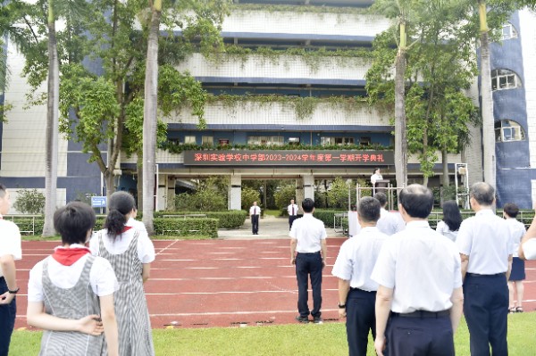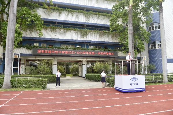 7时50分中学部全体师生齐聚运动场,隆重举行开学典礼。一声“送旗”,国旗护卫队的队员们高举国旗、校旗,迈着坚定的步伐向着升旗台前进。随后,国旗在庄严的国歌声中缓缓升起,校旗在激昂的校歌声中徐徐上升。开学典礼上,全面主持中学部工作的杨宁主任发表了主题讲话。他以“扬中华美德,传实验文化,育时代新人”为主题,指出传统美德是五千多年中华文明的核心所在。他强调不论是青春飞扬的成都大运会、抗洪抢险的众志成城,还是面对国际重要事件的正义立场,都展现出伟大祖国的大国气质、世界格局、普世胸怀,都是中华现代文明的良好诠释,民族传统美德的集中呈现。他希望全体师生携手同行,用勤奋和智慧,书写人生新的篇章!