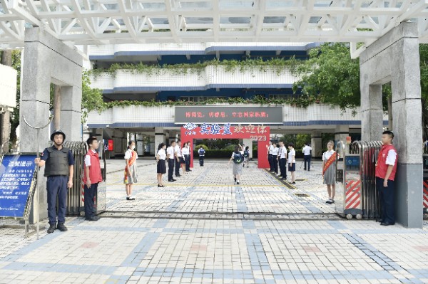 九月,夏天的热烈渐渐退去,秋天的凉爽慢慢来临。伴随着秋天的步伐,我们迎来了2023-2024学年度第一学期的开学第一天。2023年9月4日上午7时30分,阳光洒满了校园,绿叶在微风中轻轻摇曳,中学部行政干部在门口热情迎接实验学子返校。经过充实的暑假,中学部全体师生以精神饱满的状态回到了熟悉的校园,开始了新学年的校园生活。
