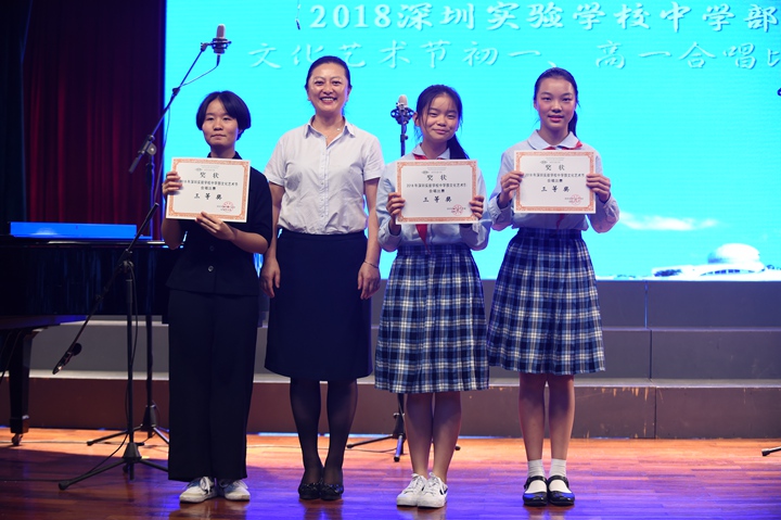 合唱比赛活动以初一(2)班学生们的凯旋演唱收尾。作为在2017年深圳市中小学艺术展演活动——班级合唱比赛中一路过关斩将、赢得优秀展演奖和最佳创意奖两项殊荣的团体,初一(2)班同学们踌躇满志,气势高昂,为此次合唱比赛带来参赛曲目《眺望你的路途》和实验校歌《实验之路春常在》,精彩的演唱、深情的朗诵和生动的表演将现场气氛推至巅峰。