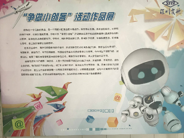 中学部第30届科技节“小创客”活动如期开展。3月29日—4月2日,整整一周,我们展出学生科技“小创客”制作共273件。所有作品都是同学们利用节假日及学习之余,用环保材料,简单工具,设计制作而成,有发光发声类的电子制作,有科学设想、创意设计方案,有科技小发明,还有科学幻想绘画,科技活动方案等等。