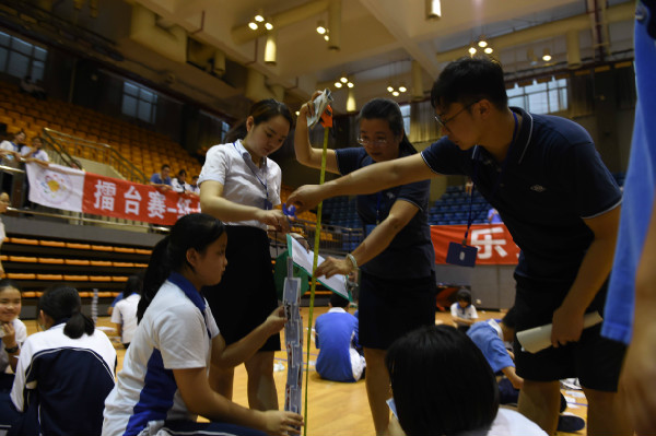 2021年4月2日下午,深圳实验学校中学部第26届科技节头脑奥林匹克运动会如期举办。本届头奥赛包括四个比赛项目:“飞向天空”、“纸桥承重”、“纸牌高塔”和“大力神”。在教务处和科学组老师们的精心策划下,在各组裁判(含师生)的精心组织下,初一、初二两个年级的学生热烈而有序地开展了各项比赛。