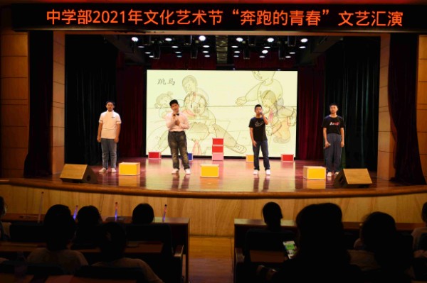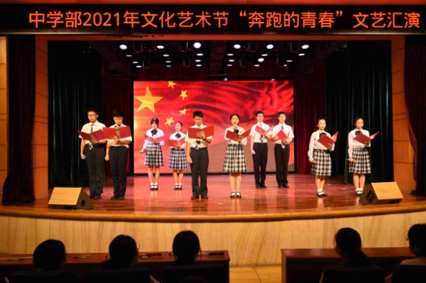 “绘蓝图,传承实验精神;唱青春,喜迎百年华诞”迎校庆暨建党100周年主题文艺汇演,于2021年4月30日在中学部小礼堂隆重举行。同学们用多样化的艺术形式抒发对母校、对祖国的深情,一场视听盛宴,将本届艺术节再一次推向高潮。