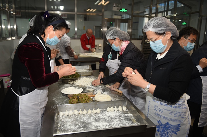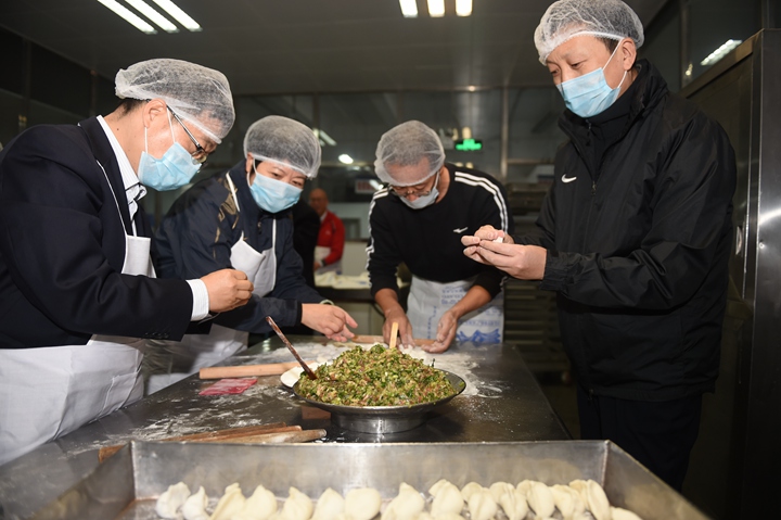 更岁饺子,团圆福禄。每逢新春佳节,饺子成为一种必不可少的佳肴。为迎接猪年的到来,12月29日下午三时许,各工会小组成员们带好防尘帽、卫生口罩,在食堂后厨开始包饺子。切菜、活馅儿、揉面、擀皮……一个个“金银元宝”在巧手下很快成形,丰盛的饺子宴即将开始。