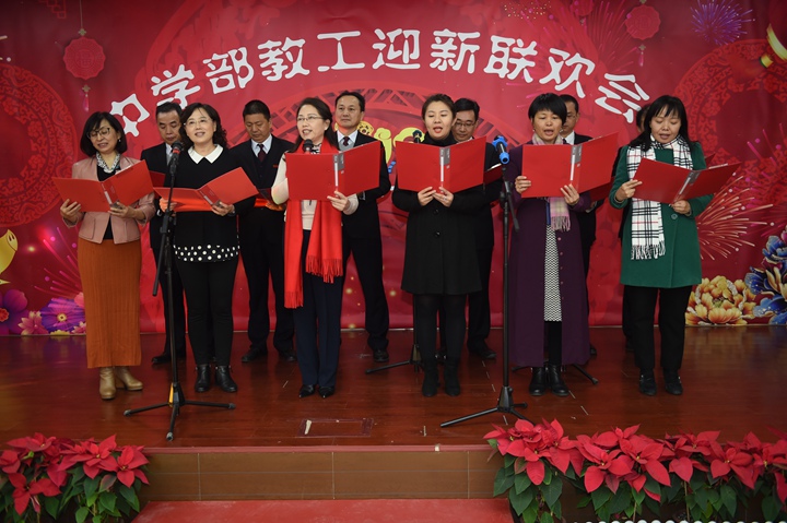 美好的时光太短暂,晚会在大家的欢声笑语中完美落幕。晚会传递了对教职工的新年祝福,展现了中学部轻松、快乐、和谐和融洽的良好工作氛围。2019年,愿每一位教职工如诗如歌,以蓬勃朝气迎接光辉灿烂的生活。愿中学部蒸蒸日上,实验之路春常在!我们将携手并肩,用团结,奋斗共同谱写实验新的篇章!(文/初一年级李佳 图/靳军强)